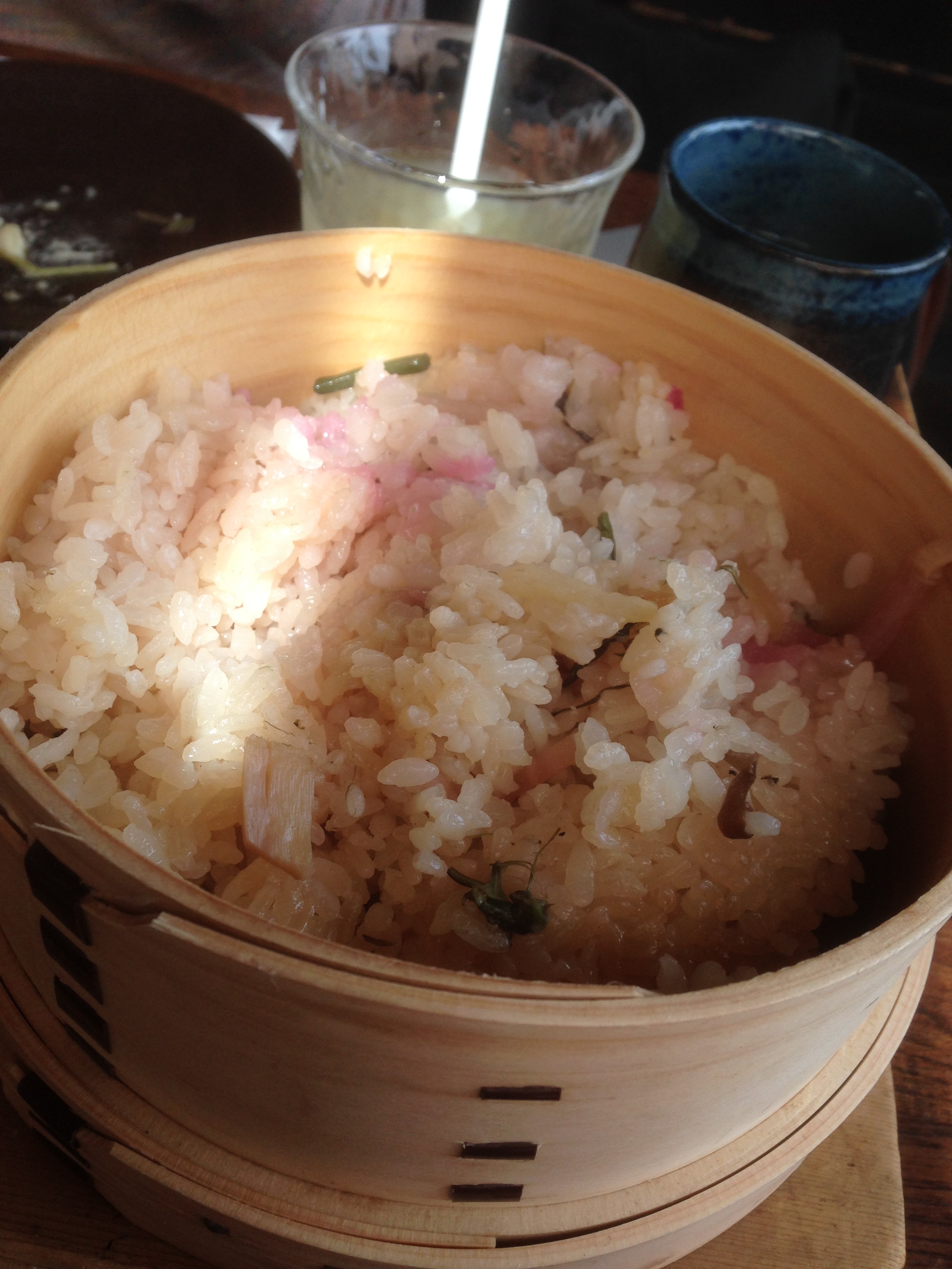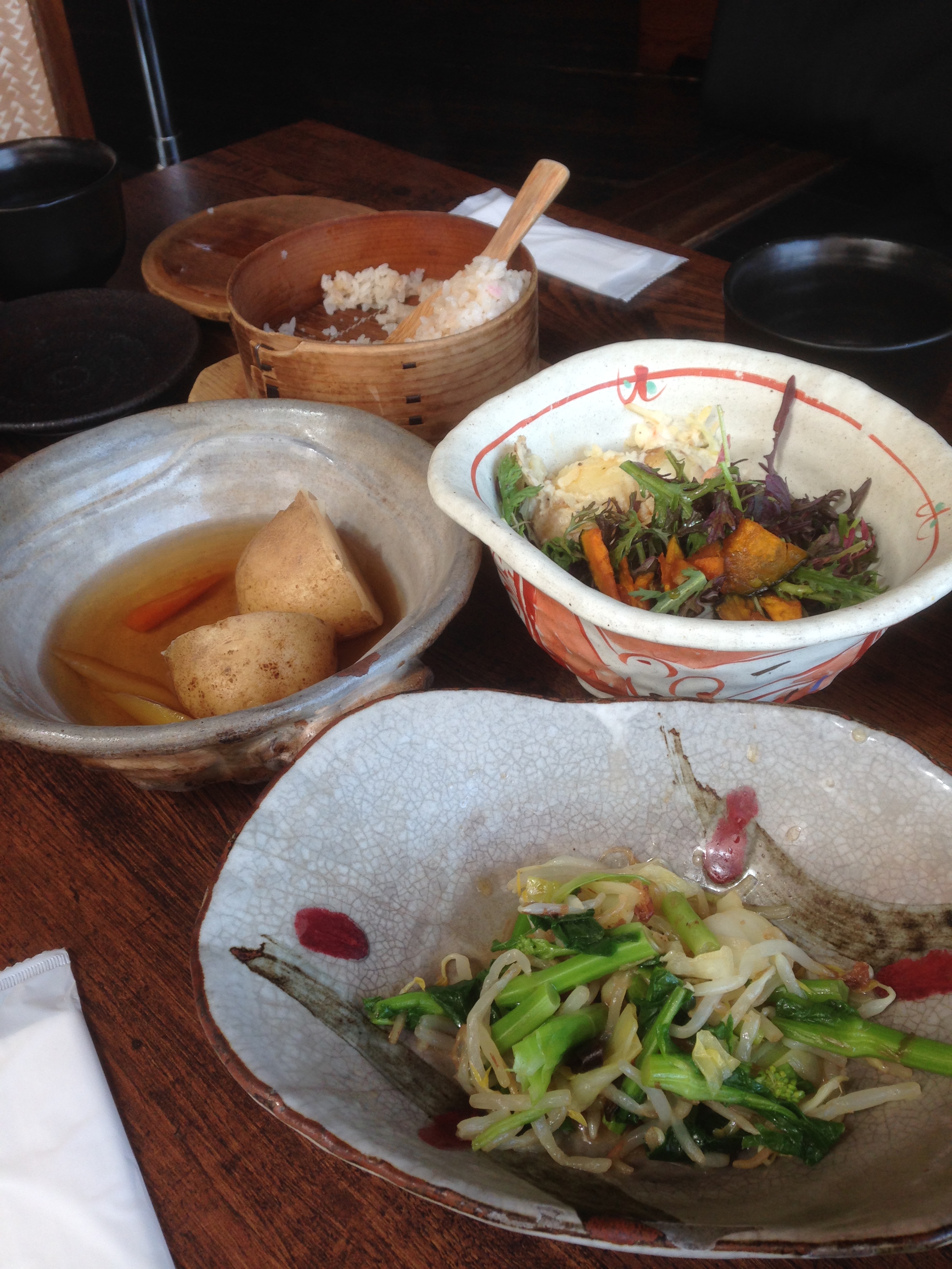 ランチ 季節の炊き込みわっぱ飯・振る舞い野菜料理・お味噌汁がおかわり無料。