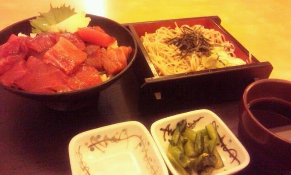 生まぐろとねぎとろ丼とミニ麺のセット:790円