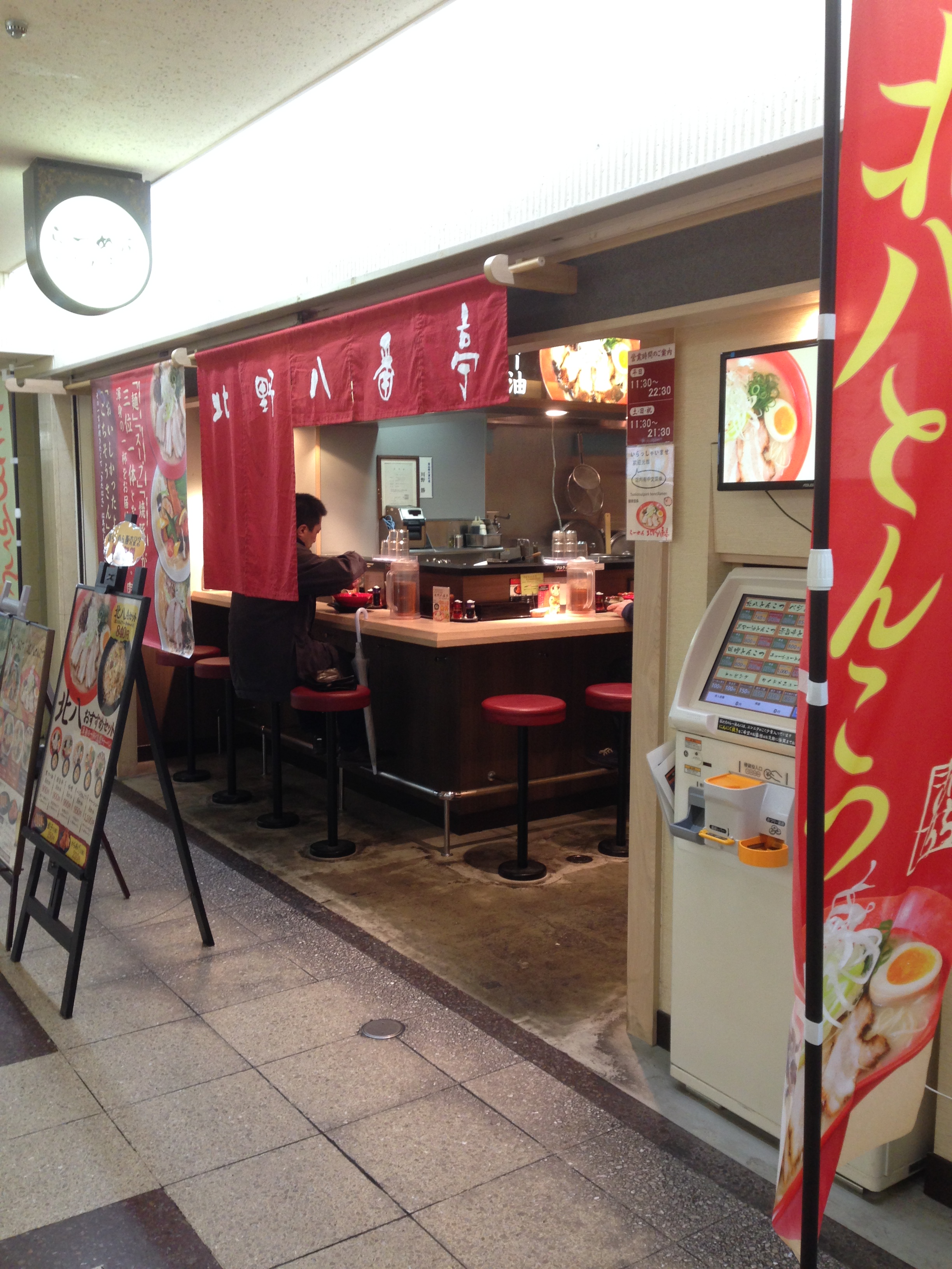 入口の券売機で発券中、スタッフさんが出てきてメニューと麺の硬さ、ニンニクの有無を聞いてくる。