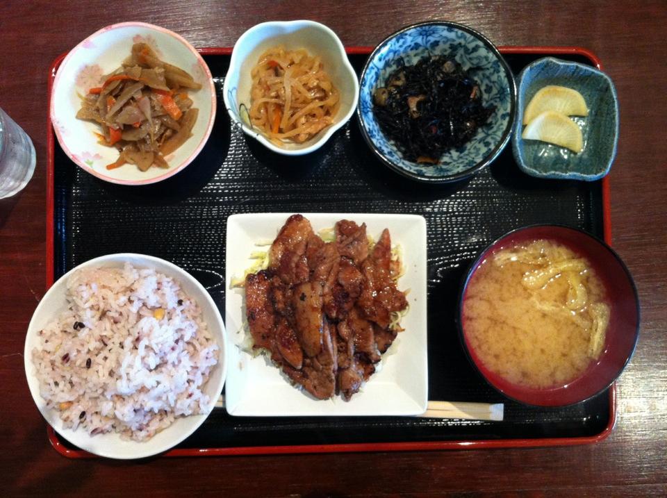 御膳は手作りお惣菜3品と味噌汁、香の物、雑穀ご飯