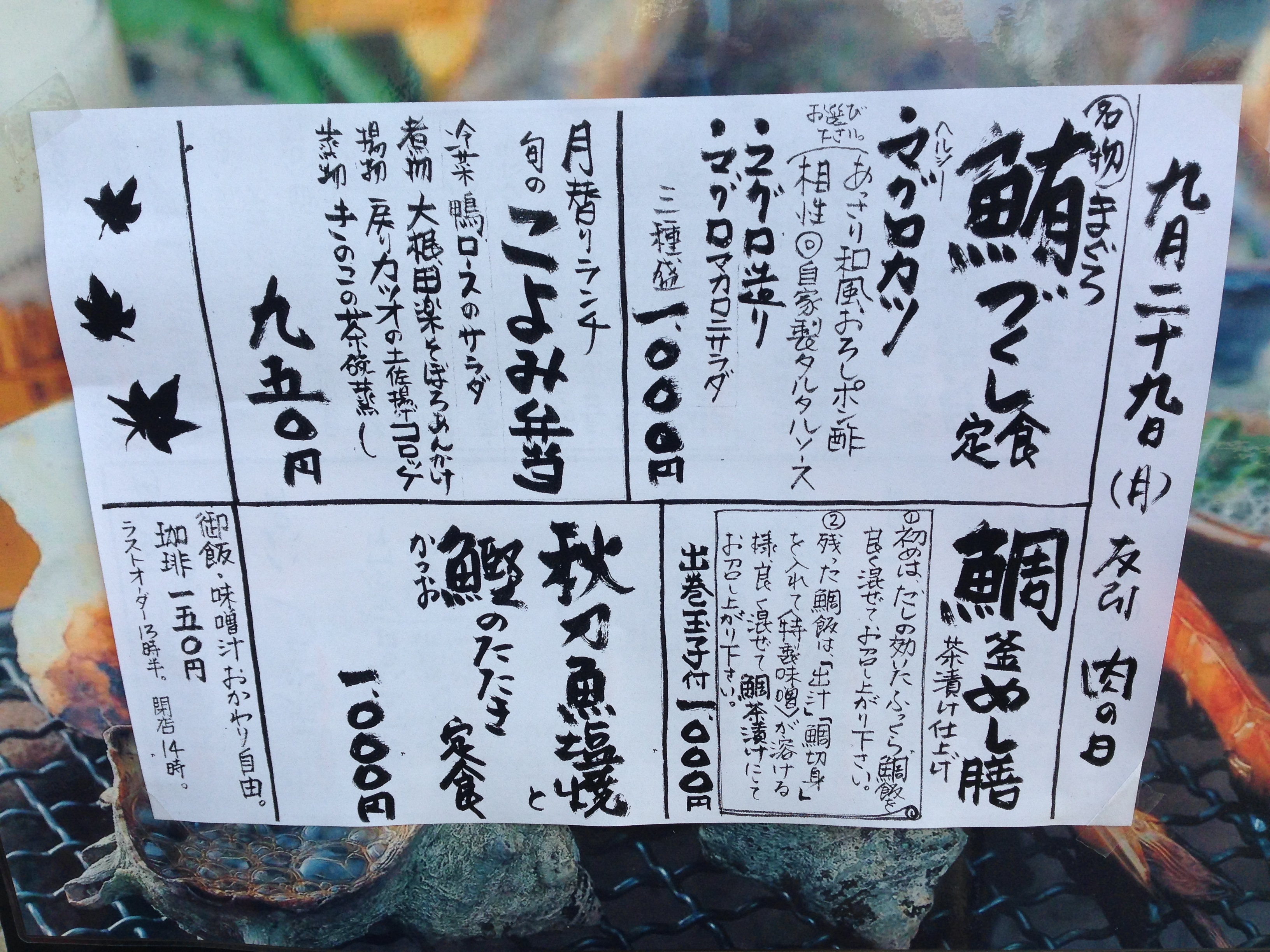 鯛釜めし膳:1,000円