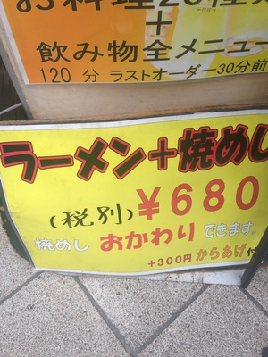 ラーメン+焼き飯:680円