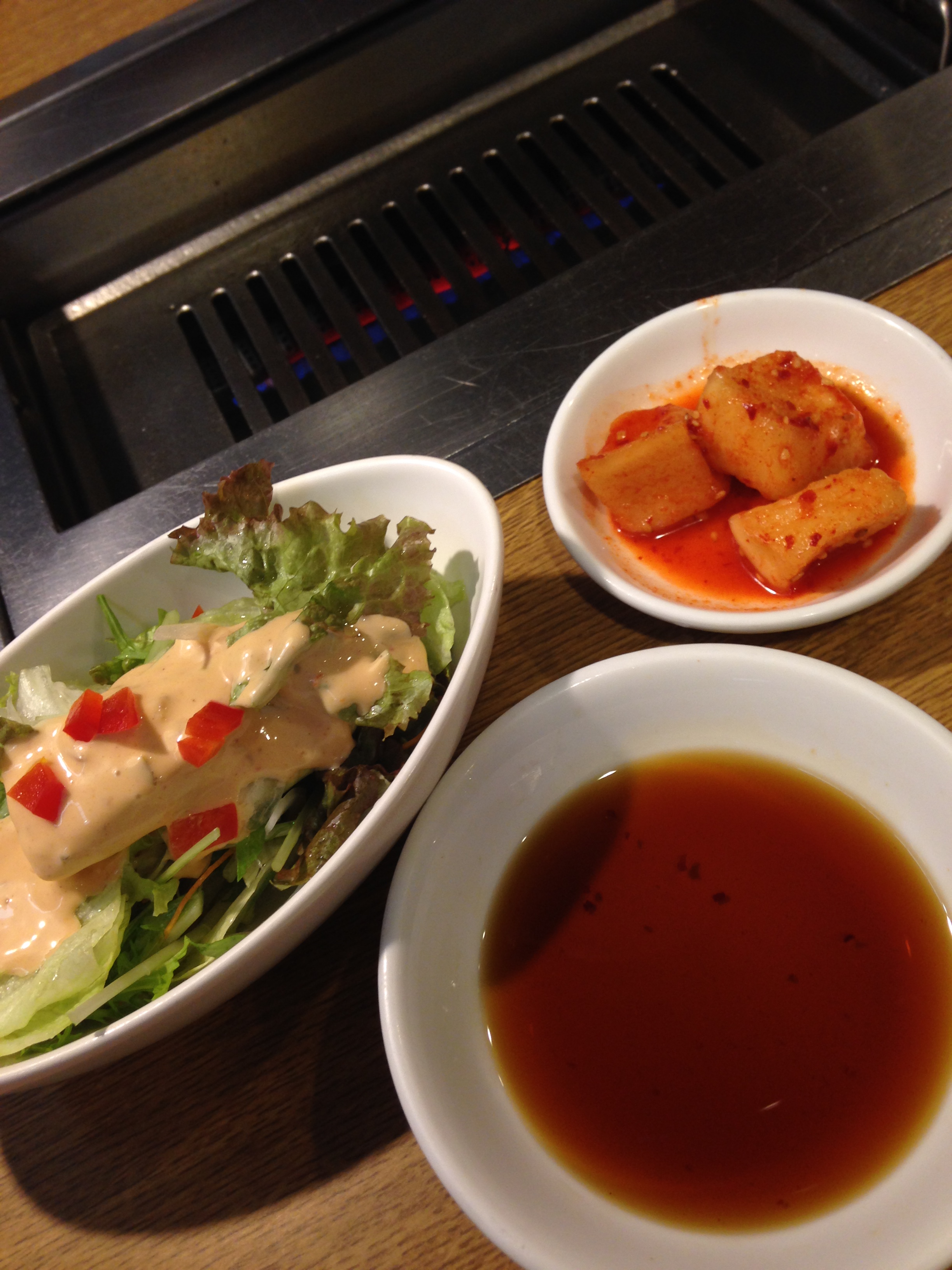 焼肉まんぷくランチ(150g)のカクテキ、サラダ、タレ
