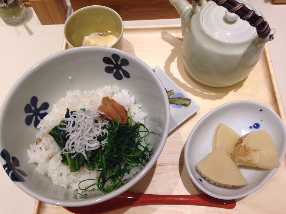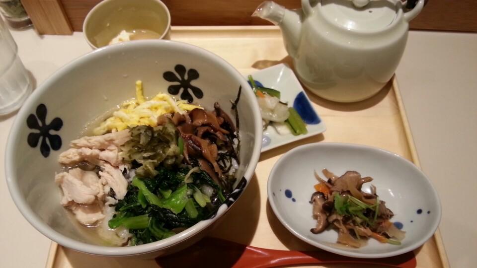メニューは全てセット。だし茶漬け+小鉢2品+お漬け物。