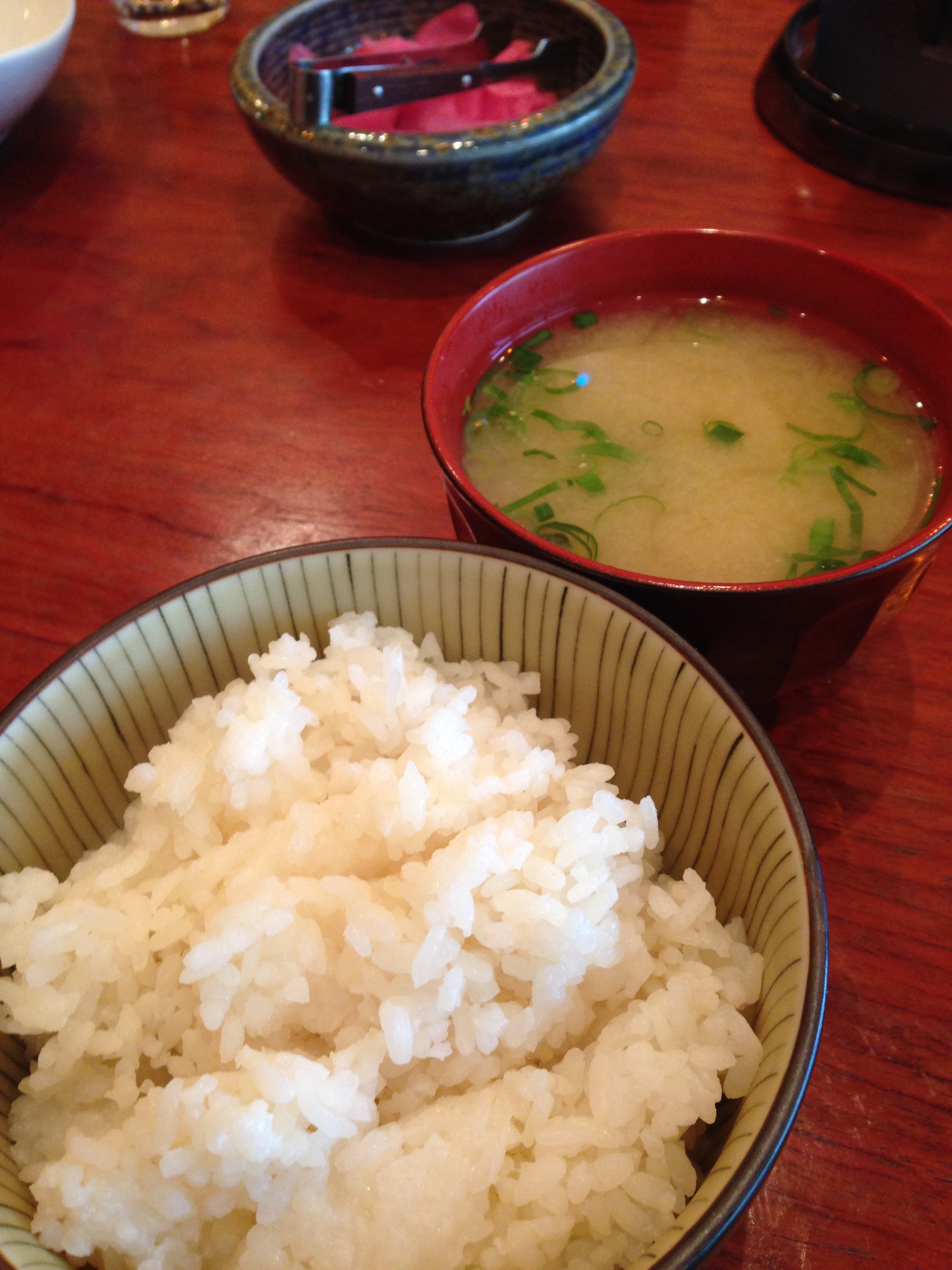 ごはんはミニ丼状の器にたっぷりと盛られて出てくる。ハンバーグには欠かせない存在だからこそ、この量はありがたい。この日の味噌汁は大根とごぼう入り。出汁の利かせ方が上手く、味噌と組み合わさって濃厚な味が生まれている。これ単体でもごはんがどんどん進むほど美味い。どちらも1回のみおかわりできるのが嬉しいところ。