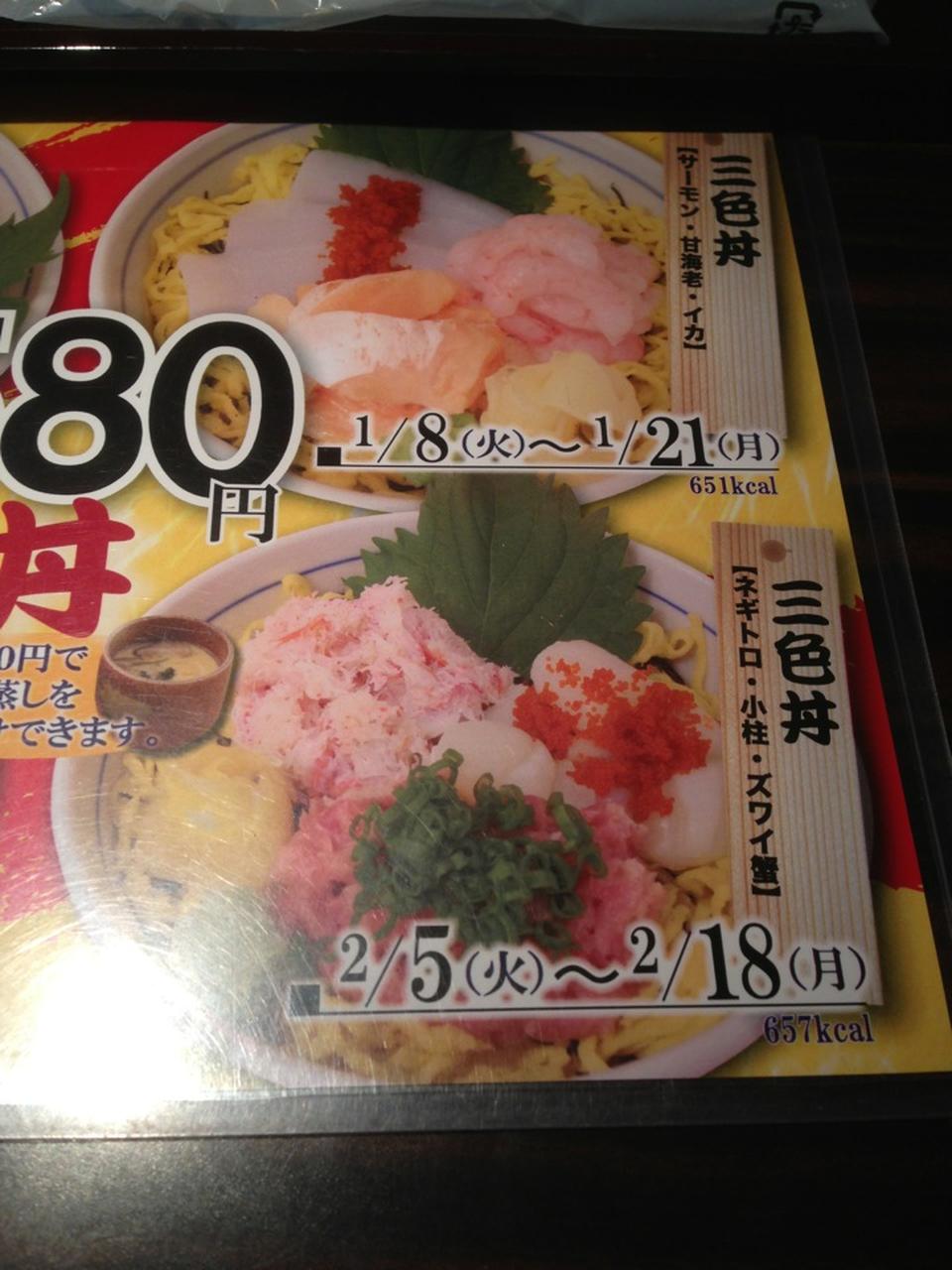 月替わり三色丼(味噌汁・茶碗蒸付):680円