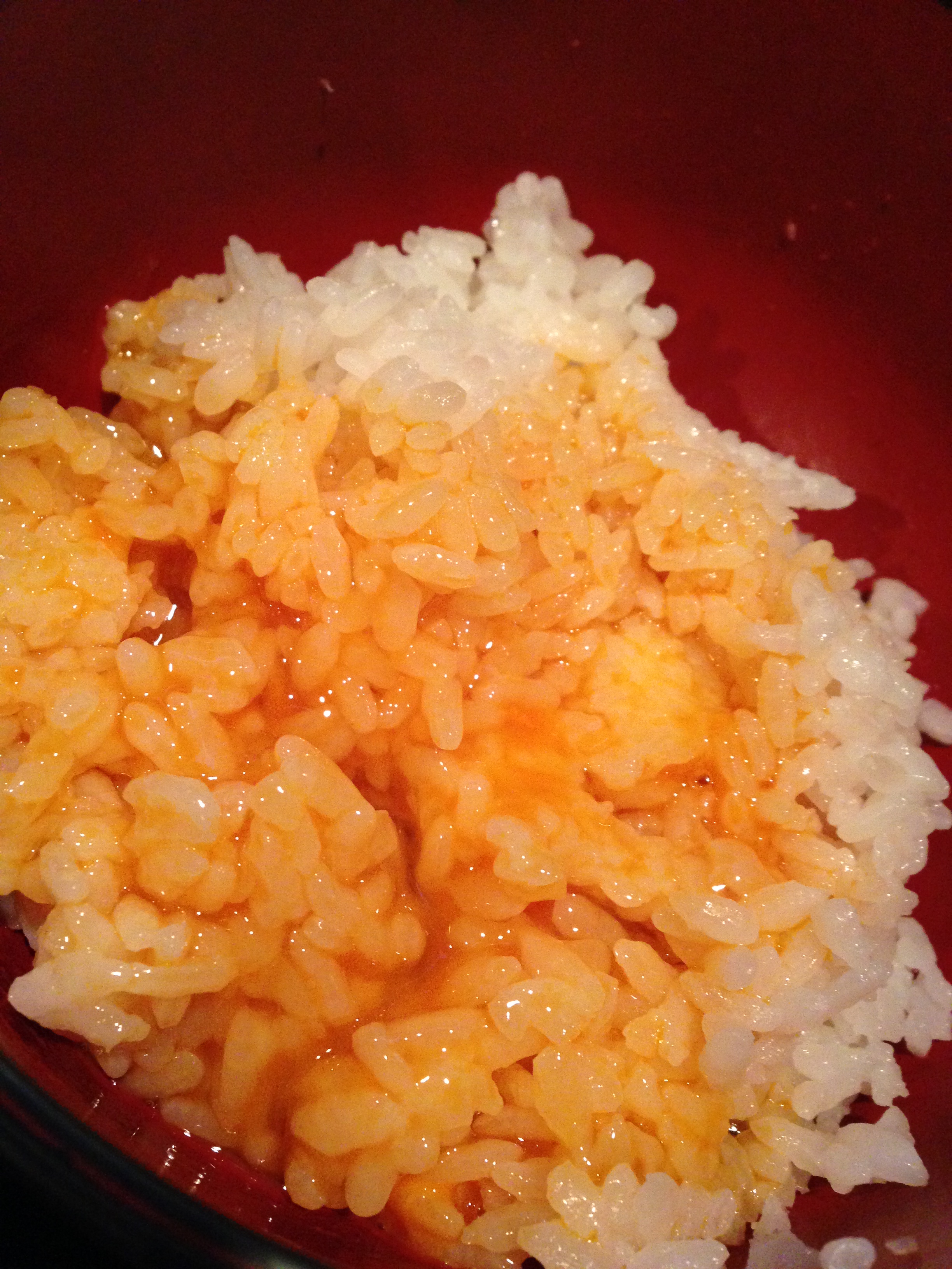 おかわりしたごはんに、サービスの生卵を落としたもの。