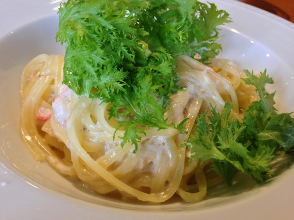 ・遠野産ほうれん草とカレイのクリームソースのパスタ