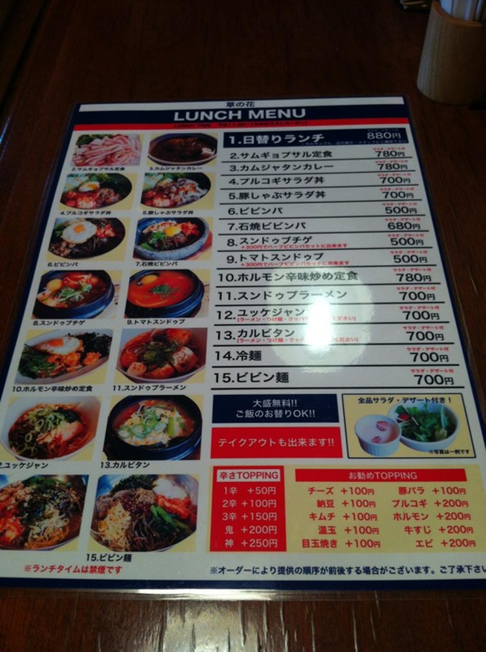 ご飯おかわり自由 【ランチ】 11:00~15:00 【ディナー】 16:30~23:30 ビビンバ定食:900円 ユッケジャン定食:90...