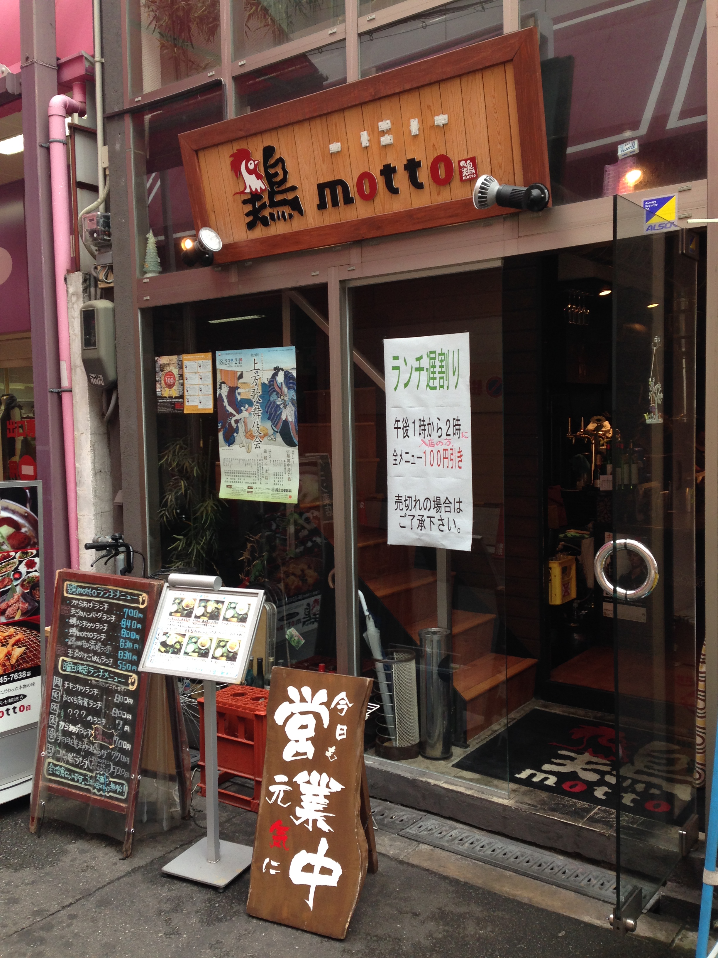 13:00~14:00に入店の方、遅割りとして全メニュー100円引き(売切れの場合も有り)