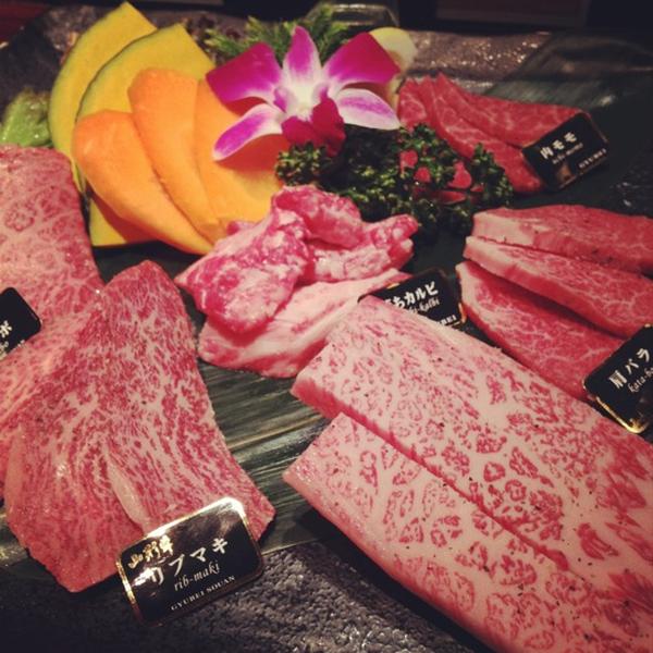 和牛上カルビ・和牛上ロース・和牛極上ロース・ライス・スープ・日替り小鉢二種・サラダ・コーヒー