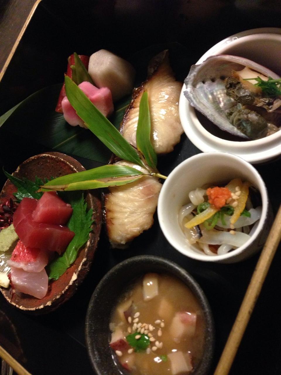 旬魚の造りをメインのお膳(煮物・飯・汁付)