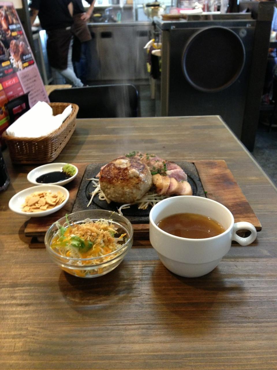 セットはライス、スープ、サラダ付き