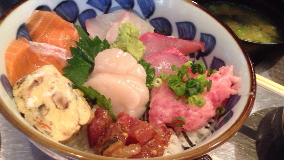 ・朝獲れ鮮魚6種盛りの海鮮丼定食:950円