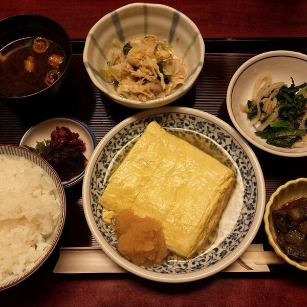 (だし巻き・おばん菜三種・白ごはん・漬物・赤だし)
