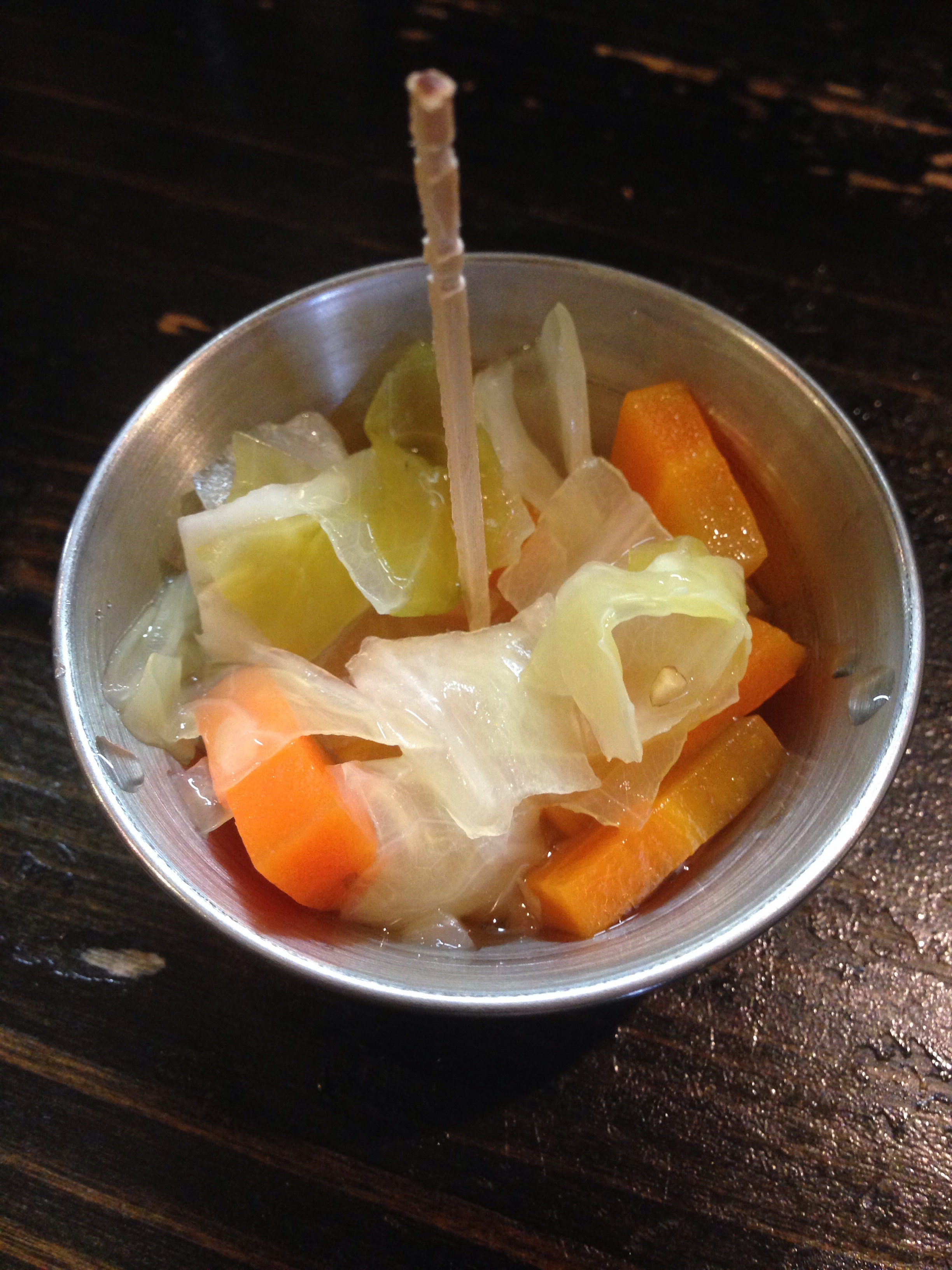 野菜の甘味が効いてあまり酸っぱくないピクルス
