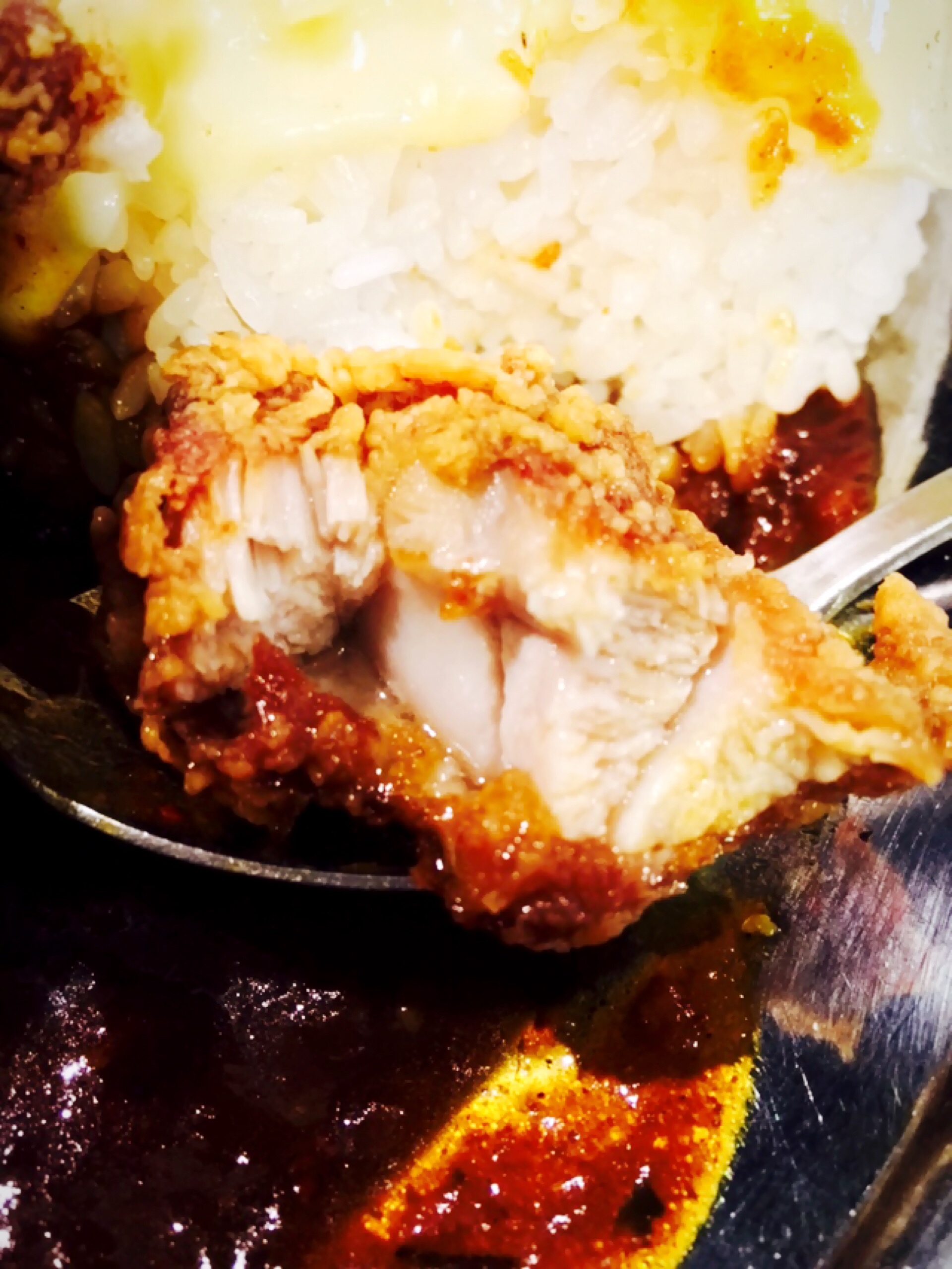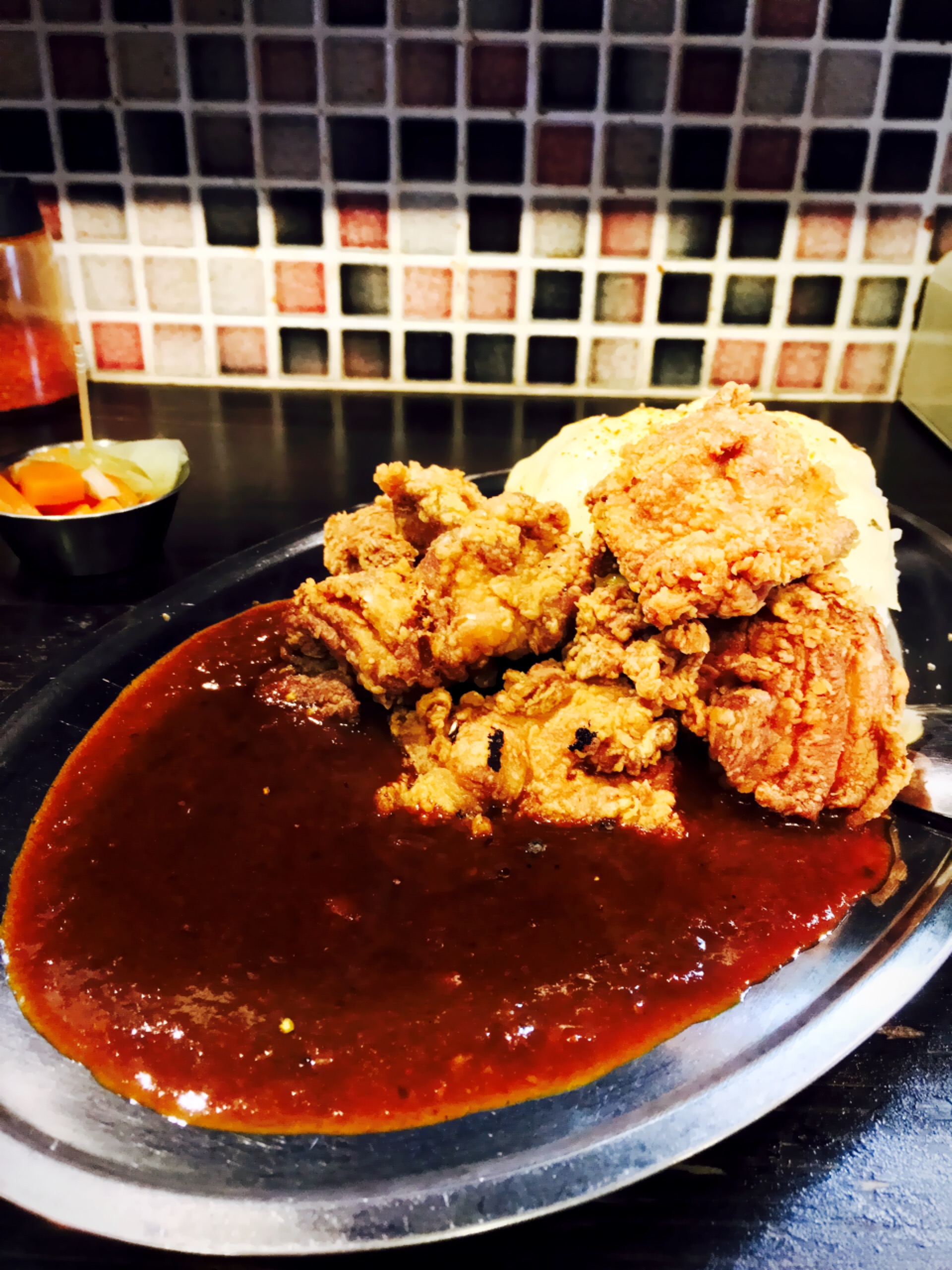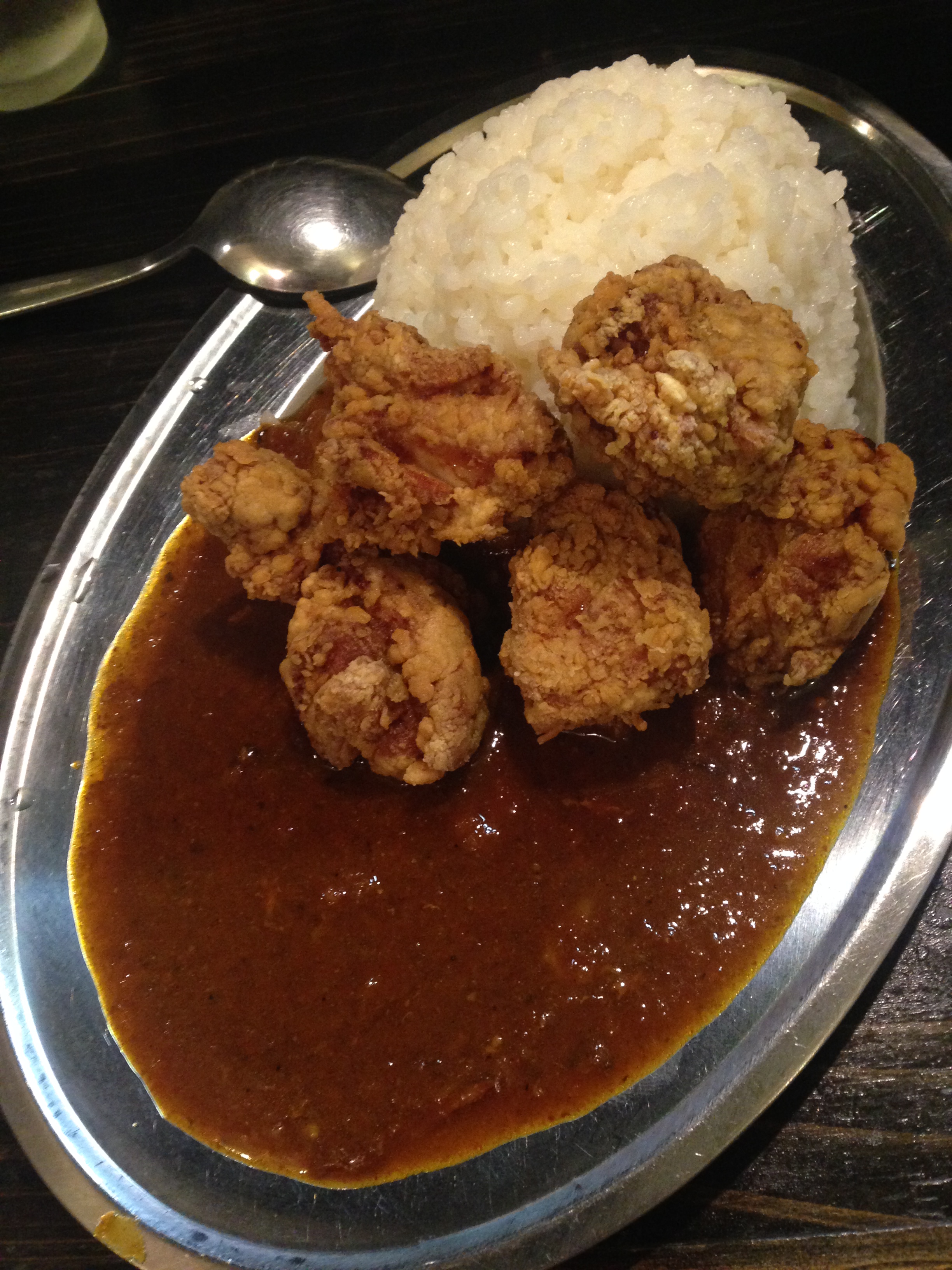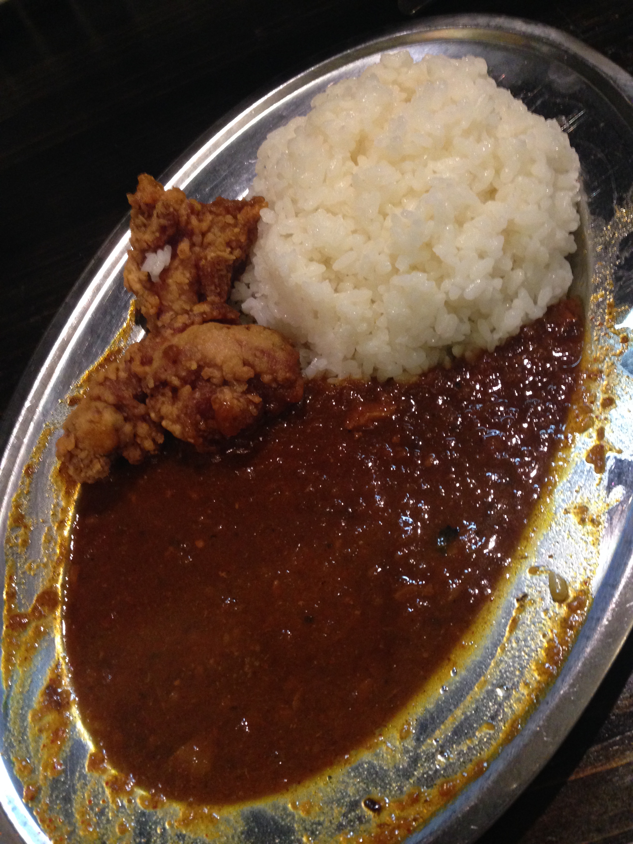 トリカラアゲは、外はサクサクしていて身がプリっとしている。強めの下味がついているが、こちらもしつこさはなく、カレーとも調和している。カレー屋のトッピングとは思えないくらい美味しい。200円で5ヶはコスパ高し。