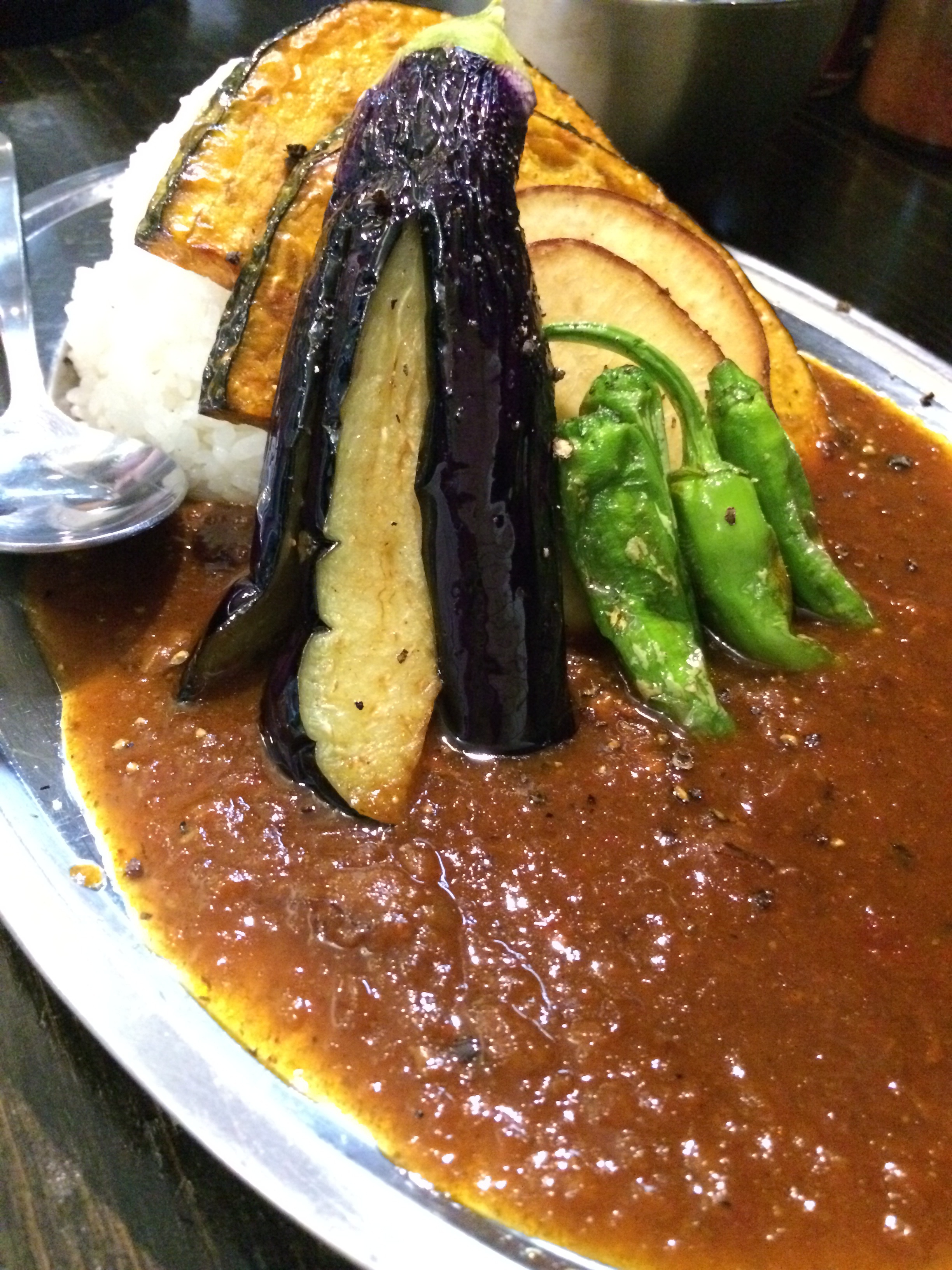 昔の大衆食堂で使われていたような銀の皿が、ノスタルジックさを感じさせるビジュアルのカレー。美味い。