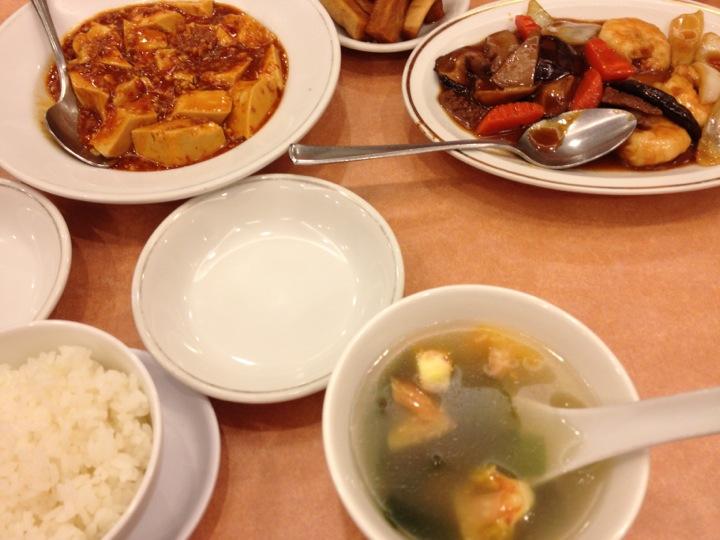 麻婆豆腐又は四川麻婆豆腐(毎週)、ほか三品(週替り)