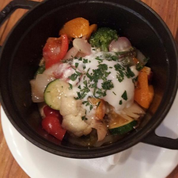 小さなお野菜のスープとお野菜の一口前菜の盛り合わせ