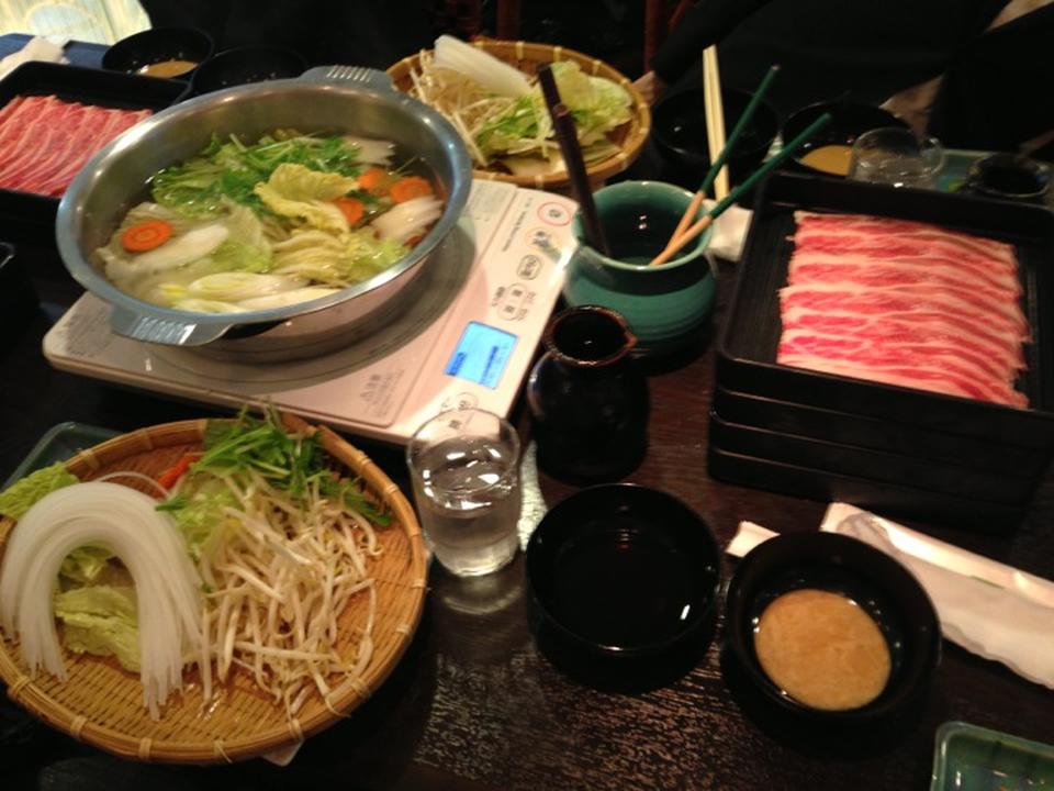 野菜・・・白菜、春菊、人参、葱、椎茸、エノキ、もやし、水菜、春雨、豆腐、トック