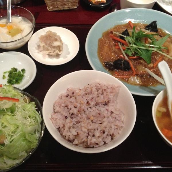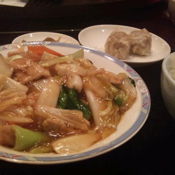 (五目あんかけ焼きそばハーフサイズ・シュウマイ2個・ご飯・スープ・デザート)