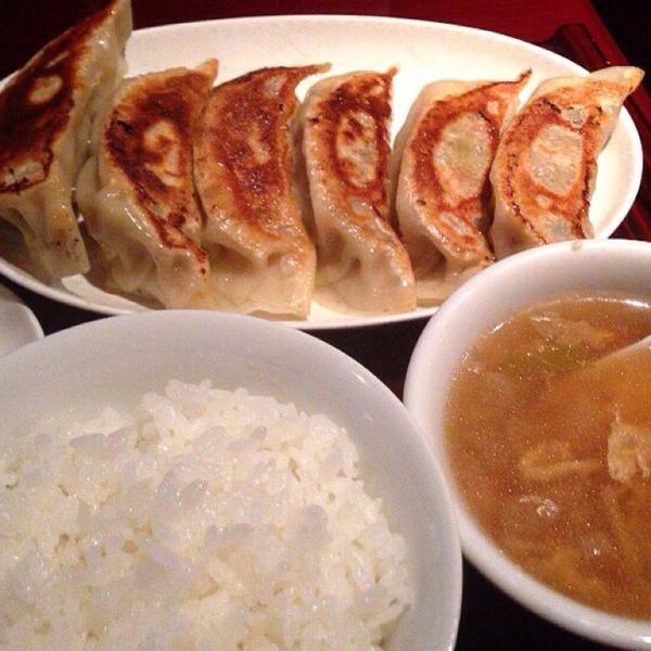 (名物大餃子6個・新潟県産コシヒカリのご飯・スープ・サラダ・香の物・杏仁豆腐)
