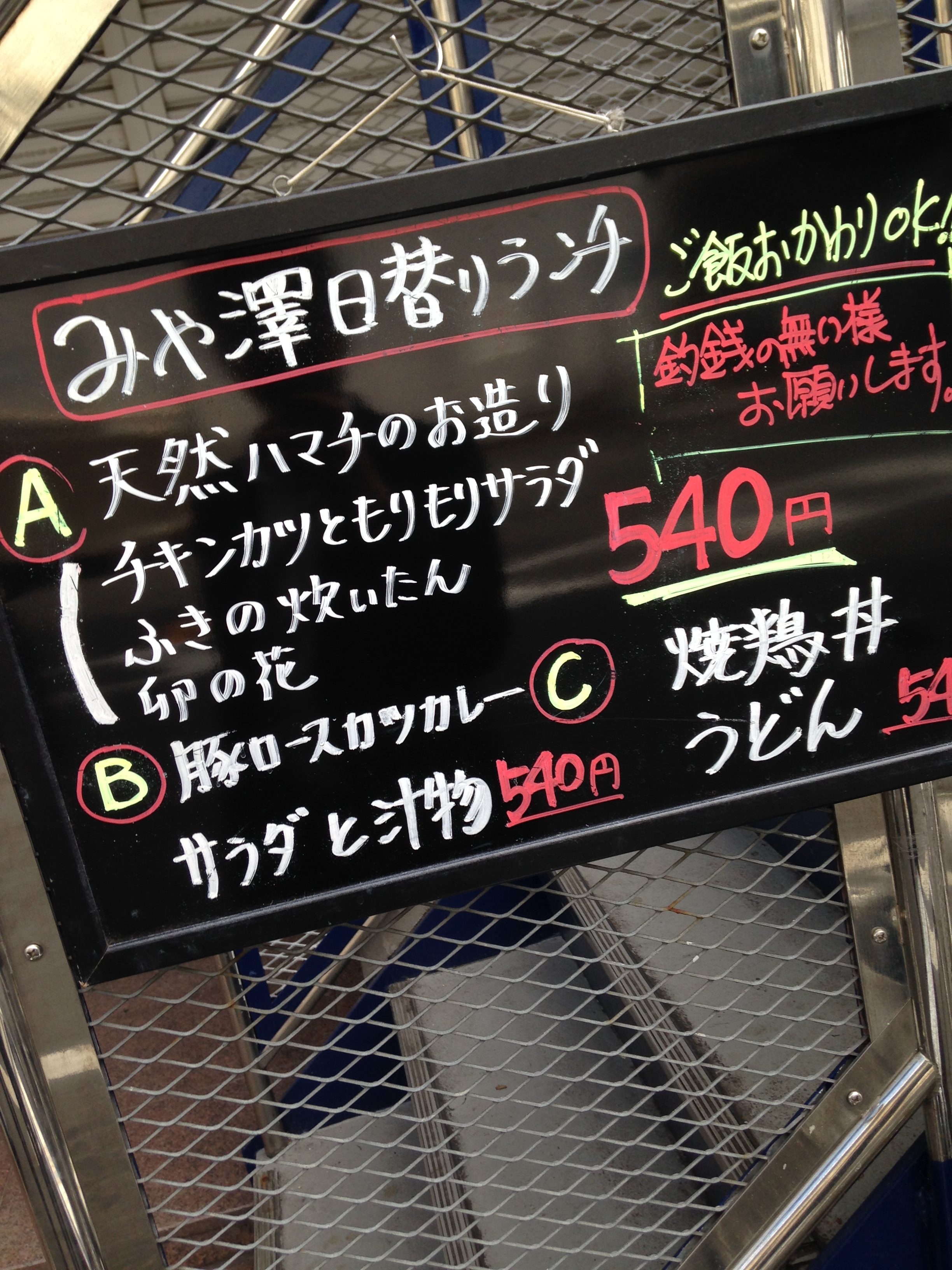 日替わり定食 540円