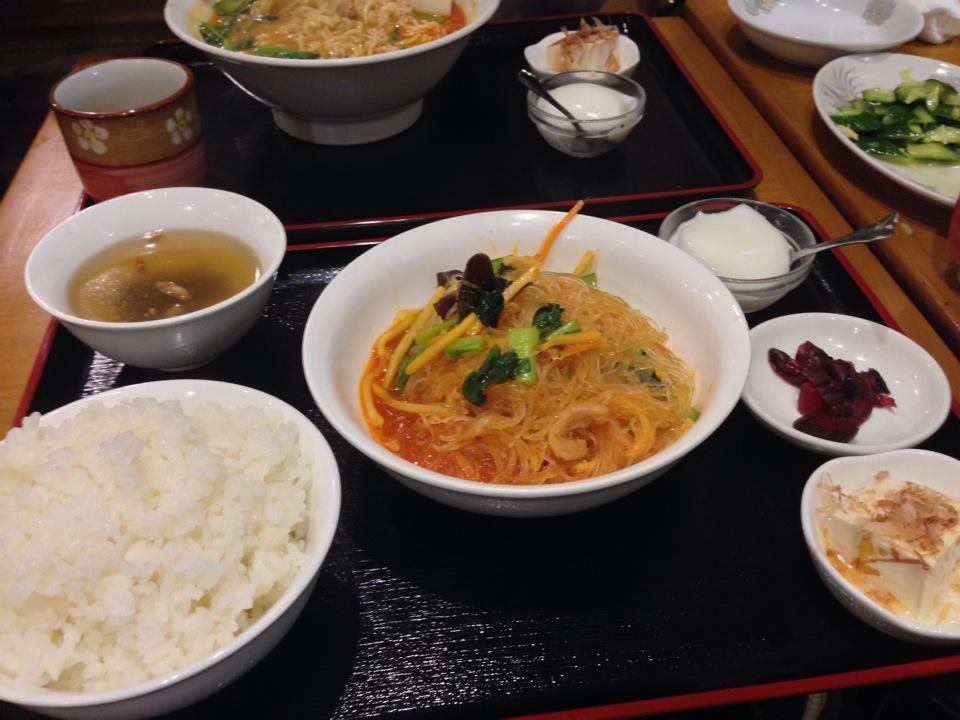 定食はスープ、ザーサイ、デザート付き