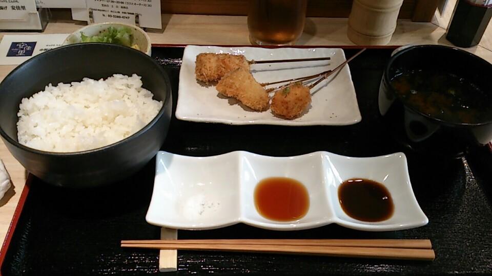 串揚げ8本・ごはん・赤だし・小鉢・お新香