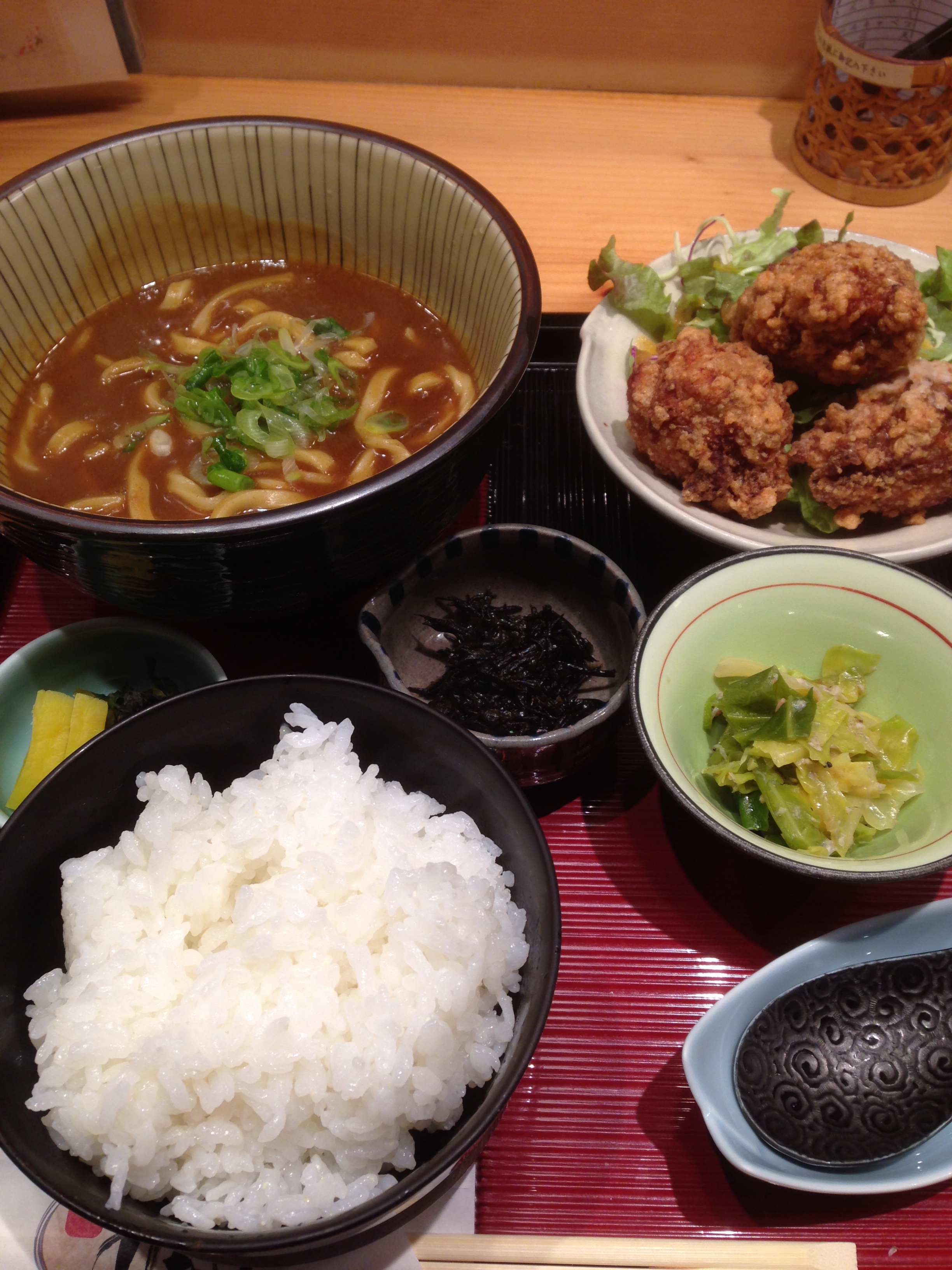 ものの10分も待たずに配膳されたカレーうどん定食です。
