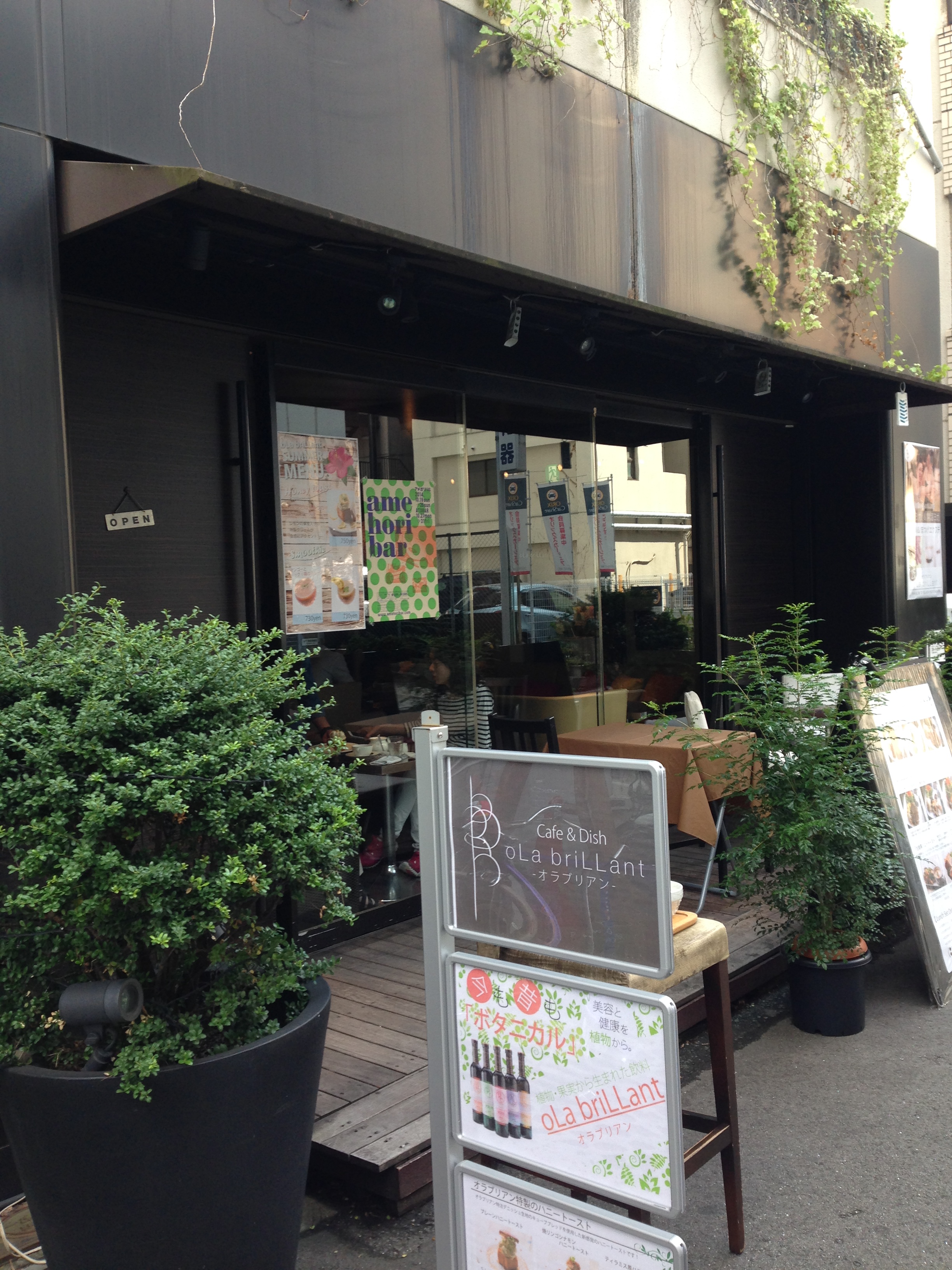 ビル上階に、グループ経営のネイルサロンや、ヨガスタジオを併設するカフェ。十六穀米やスムージーなど、美容と健康を意識したメニュー構成が特徴。ランチタイムが、18:00までと長いのもポイント。
