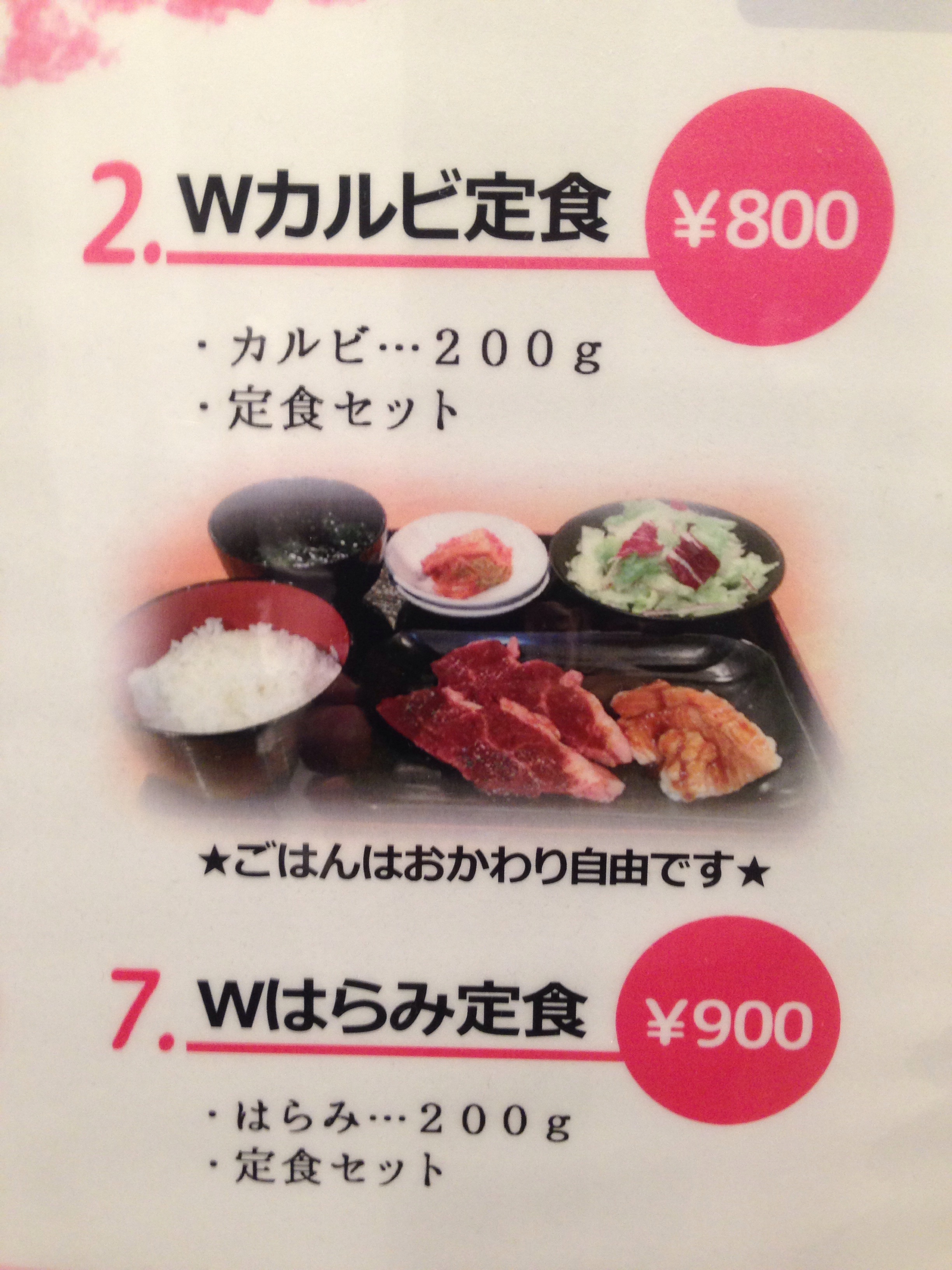 Wカルビ定食:800円