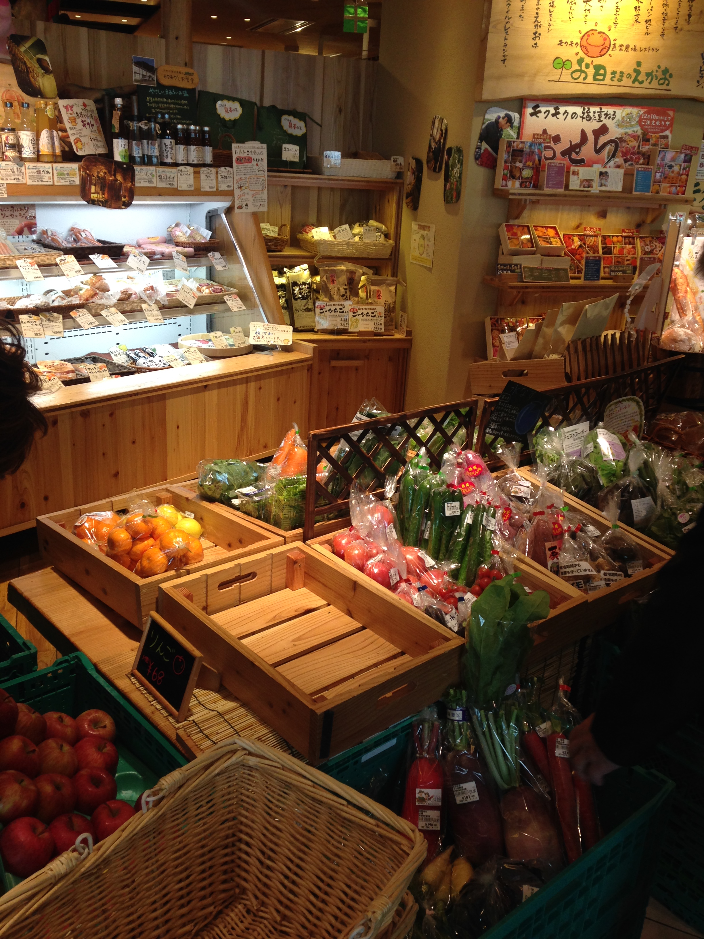 店頭ではモクモク手作りファームの食材を販売するコーナーも有り。
