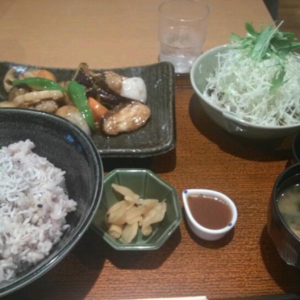鶏と野菜の黒酢あん定食:763円