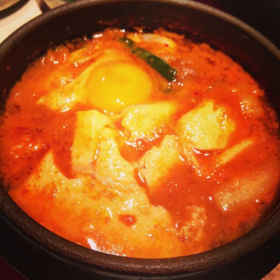 スンドゥブ(純豆腐)チゲ セット(ご飯、ナムル付き):980円