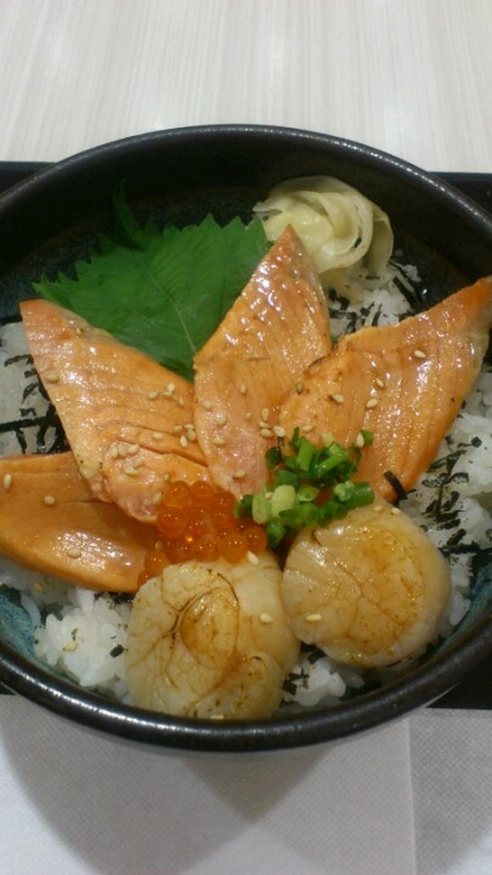 サーモンと帆立の炙り漬け丼:650円