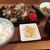 (お刺身・焼き魚・海老かき揚げ・出し巻き玉子・ご飯・惣菜・漬物・味噌汁・抹茶アイス)