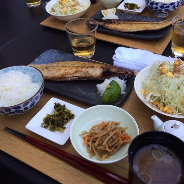 (焼き魚・ご飯・サラダ・惣菜・漬物・味噌汁)
