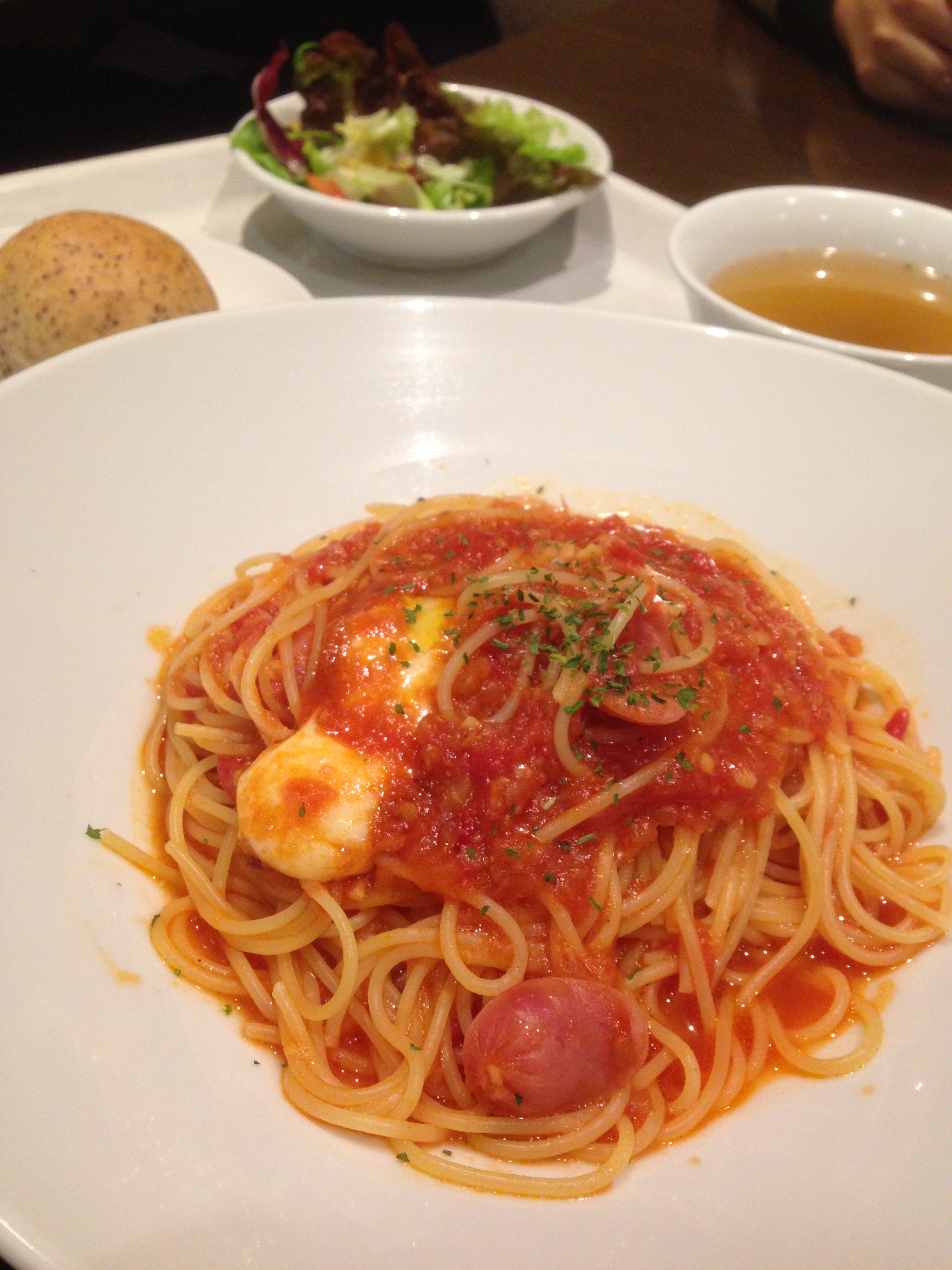 メニューは日替りパスタの「ソーセージとモッツァレラトマト」をチョイス。