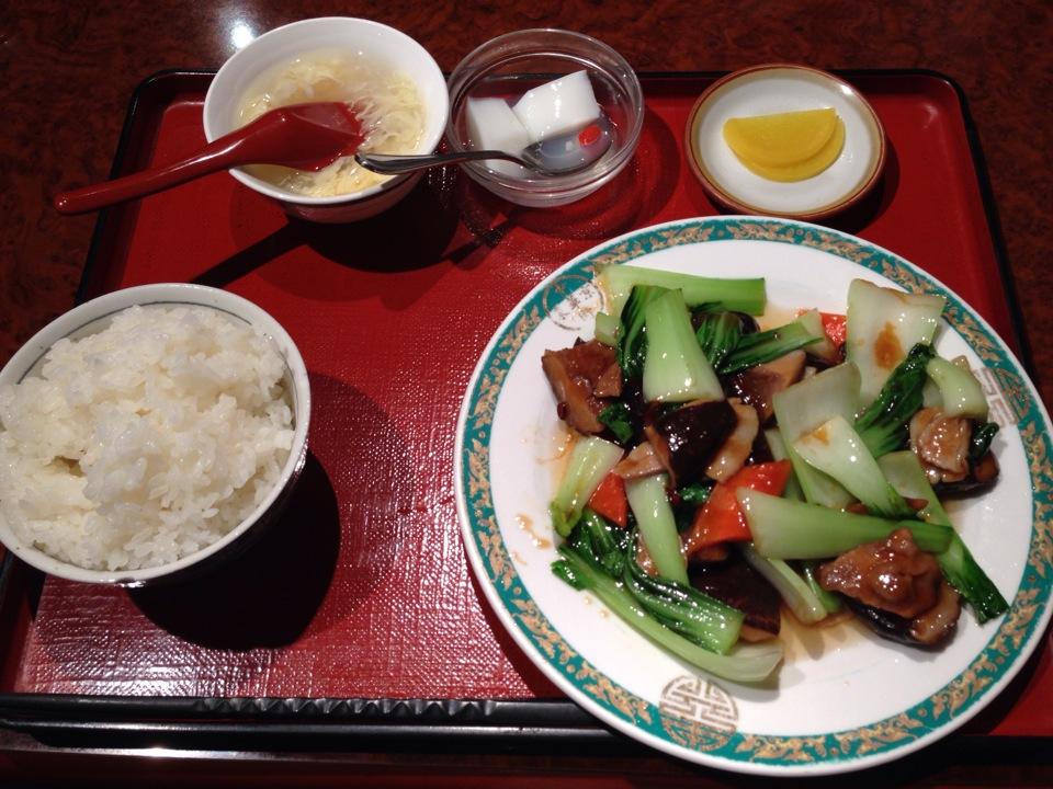 チンゲンサイとしいたけと肉の塩炒め:750円