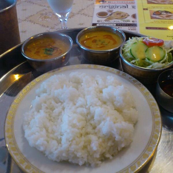 (カレー2種・サラダ、デザート付、ナンorライス)