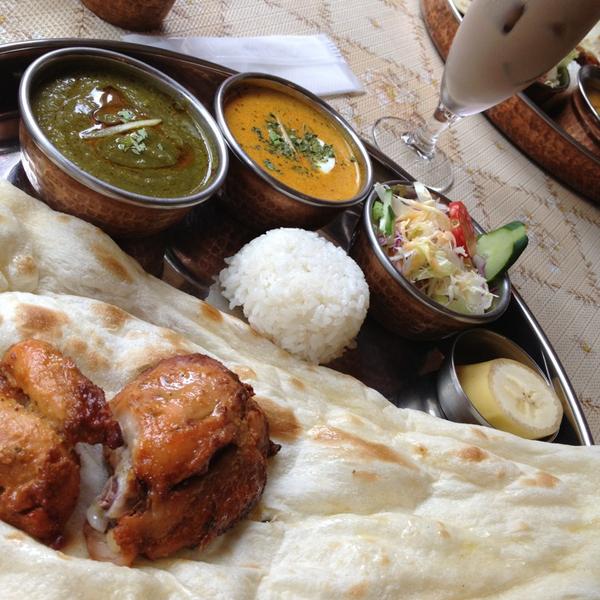(カレー2種・サラダ、チキンティッカ、デザート付、ナンorライス)