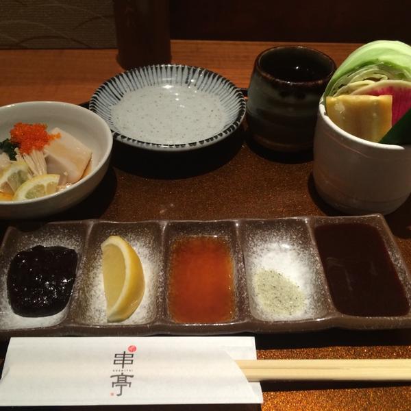 アスパラ一本揚げ・天使の海老・特選串揚げ五種・小鉢二種
