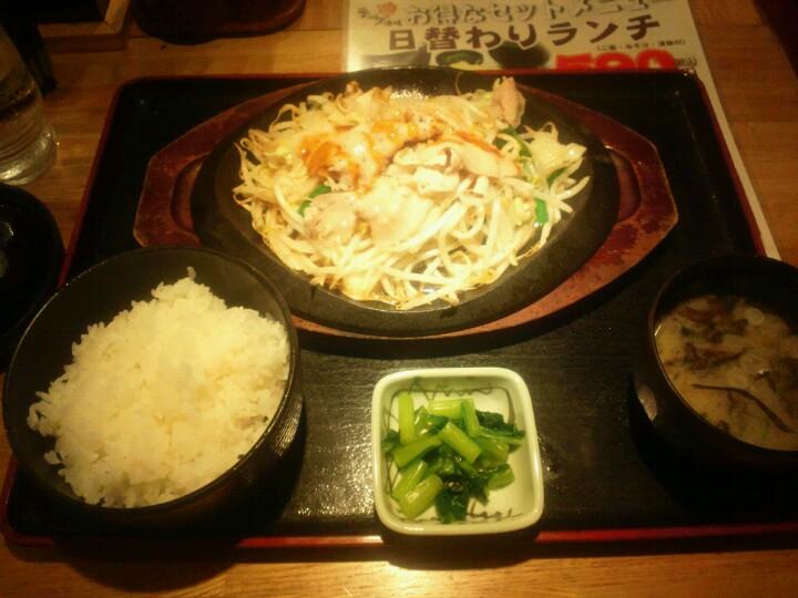 豚肉と野菜の鉄板焼きセット:590円