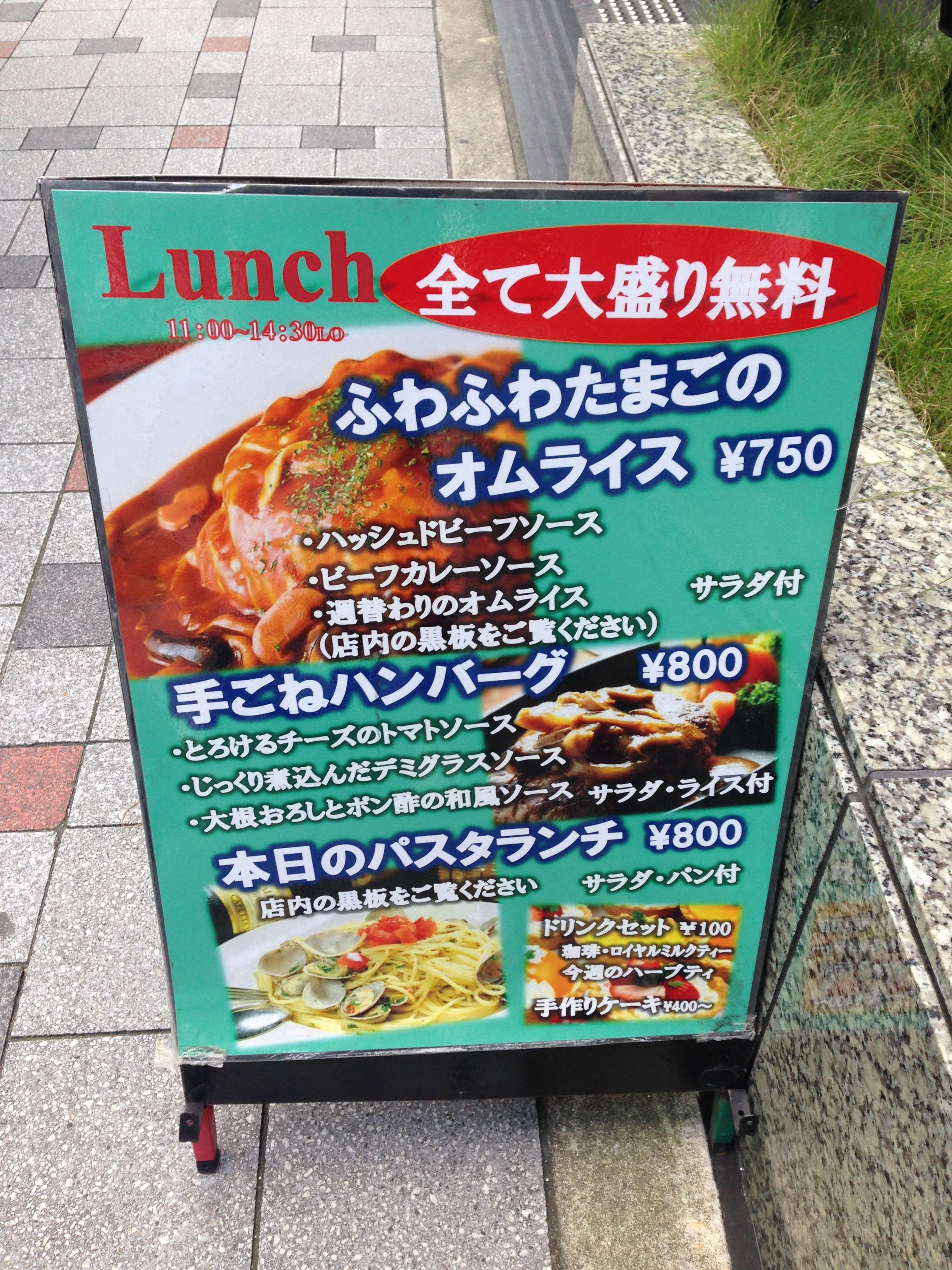ランチ 大盛り無料。