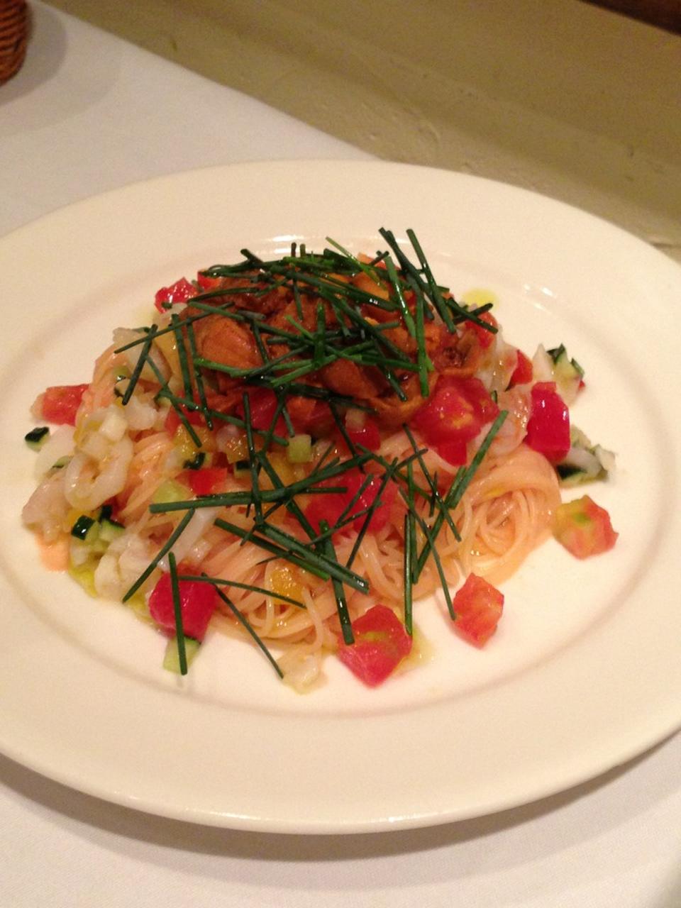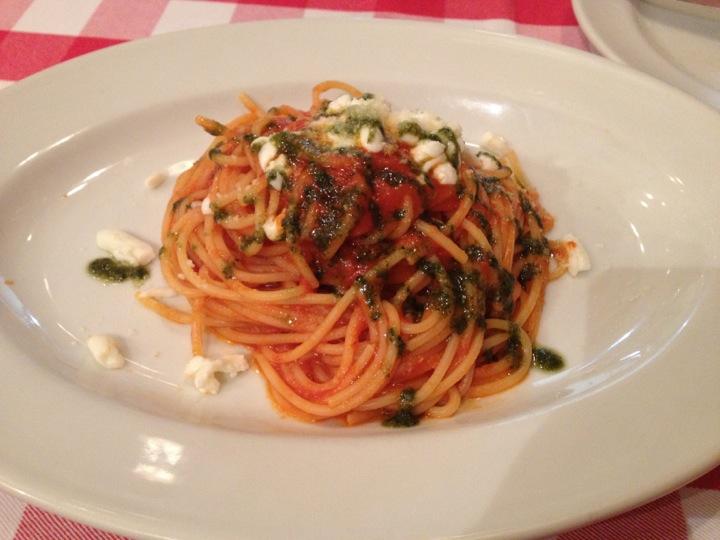 .(パスタ)手打ちパスタ”トロフィエ”津軽鶏とインカの目覚めのジェノヴェーゼソース