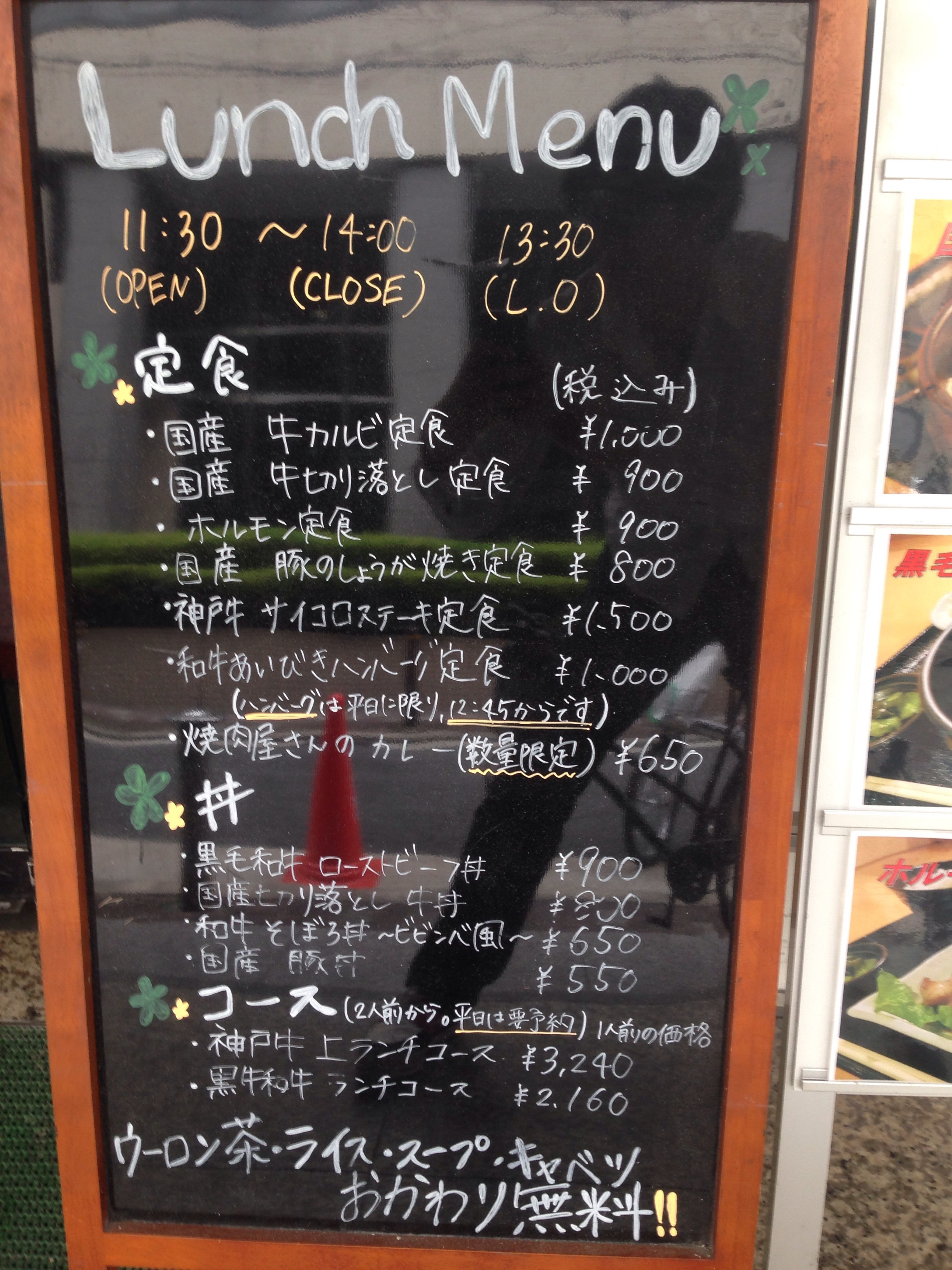 国産牛カルビ定食:1000円