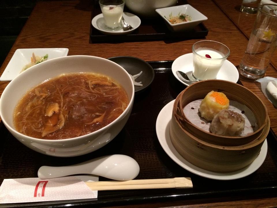 フカヒレあんかけ御飯・和え物・スープ・蒸し点心二種