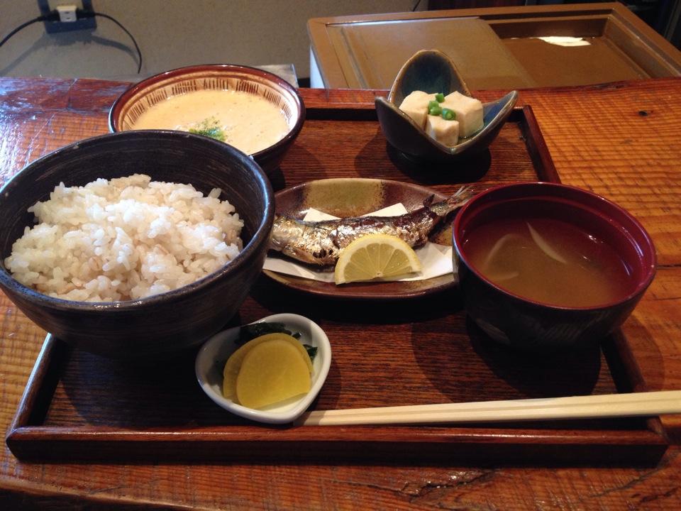 (うるめ鰯・小鉢・麦ごはん・香物・味噌汁のセット)